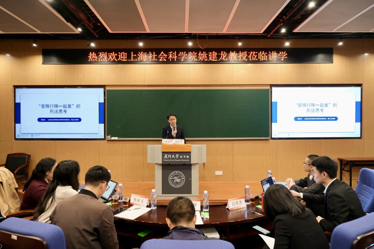 冷风微起,冬意轻拂。2024年12月3日晚,一场聚焦《刑法修正案(十二)》关于行贿犯罪重要修改的讲座“‘受贿行贿一起查’的刑法省思”在厦门大学法学院B138教室拉开序幕。本次讲座荣幸邀请到上海社会科学院党委副书记、法学研究所所长及研究员、博士生导师、《政治与法律》主编姚建龙教授担任主讲嘉宾。厦门大学经济犯罪研究中心主任、刑法学科带头人李兰英教授担任主持,刑法教研室的教师、校外实务专家以及部分本硕博的学生们到会聆听。
