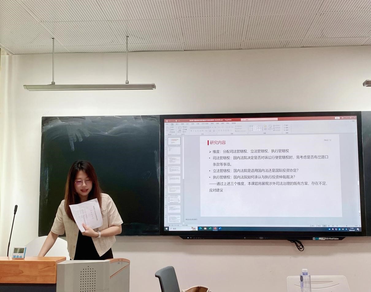 参会师生积极参与讨论。陈辉萍教授首先指出该研究存在分类不准确的问题,例如涉外司法治理中有关司法管辖权、立法管辖权、执行管辖权的分类并不准确;韩秀丽教授提出了外国投资者优惠待遇条款的界定方式,以及后续明确研究立场和研究目的等改进建议;陈喜峰副教授对研究采用的大数据分析方法给予肯定,同时指出现有框架存在涉外执法治理漏缺的不足,建议重新审视涉外视角和国际视角的不同之处。温志媛博士对以上疑问和建议均予以回应,并补充了当前研究更加关注是否存在歧视外国投资者的问题,本研究意在进行适当纠偏。