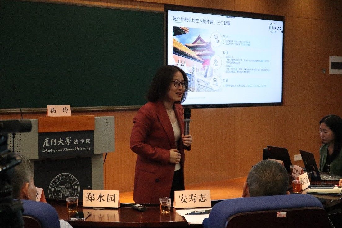 2022年12月9日,《境外仲裁机构在内地仲裁的立法回顾、司法演进和前景展望》作为“厦门大学国际法前沿论坛”学术讲座之一,在厦门大学法学院B138以及线上成功举办。香港国际仲裁中心(HKIAC)副秘书长暨上海代表处首席代表杨玲博士,为厦门大学法学院师生及校友讲授了境外仲裁机构在内地仲裁的实务和理论焦点问题。