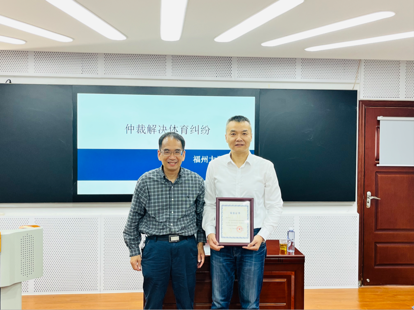 2024年5月15日至17日,福州大学法学院副院长、博士生导师李智教授作为厦门大学陈安国际法学发展基金会2024年度“陈安国际法学讲座教授”,为我院师生讲授“仲裁解决体育纠纷与体育法治建设”系列讲座。中国国际经济法学会副会长、厦门大学陈安国际法学发展基金会理事长徐崇利教授为李智教授颁发荣誉聘书。