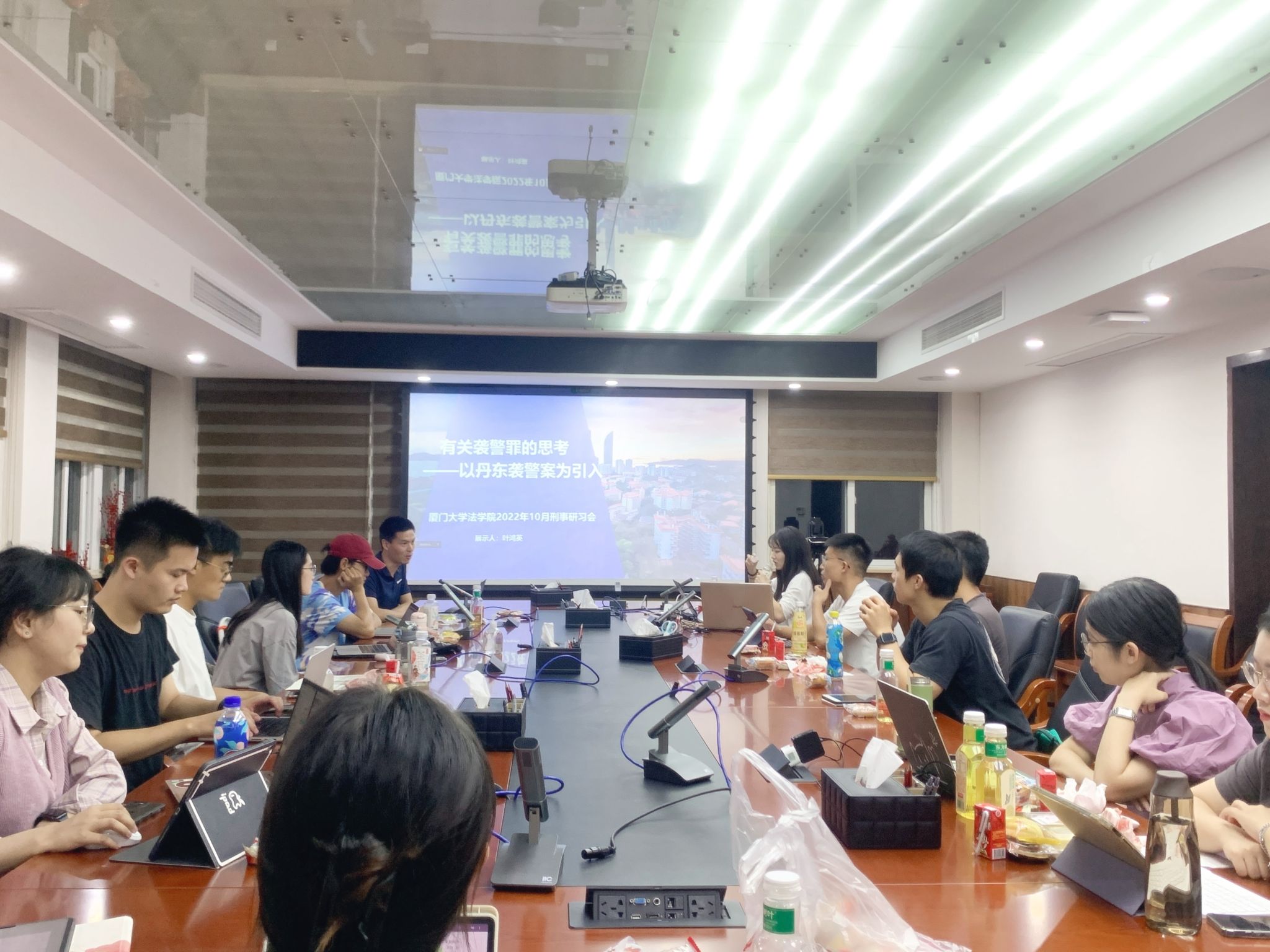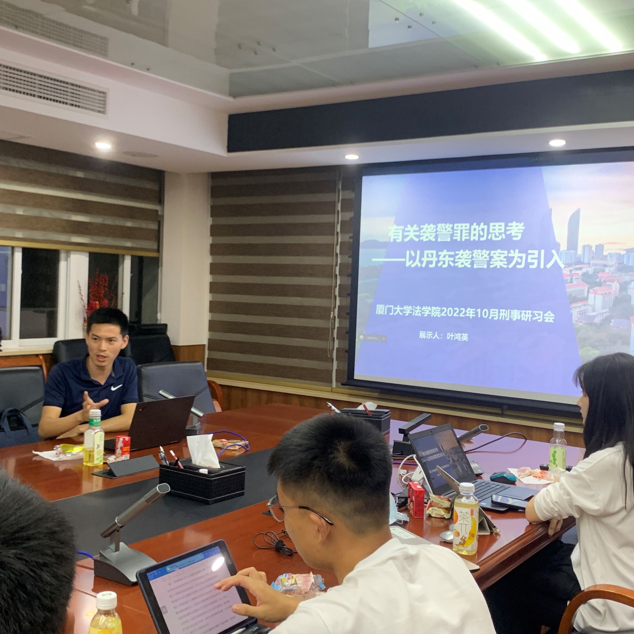 2022年10月23日晚,以“袭警罪的法教义学分析”为主题的第九期刑事研习会在法学院B220会议室顺利举行。本次研习会由叶鸿英同学围绕“袭警罪”作主题分享,廖子瑶、吕丹和阙耿三位同学担任与谈人。与此同时,还特别邀请了研二、研三的同学为新生分享研究生学习、实习和找工作的经验教训,刑法教研室汪东升老师担任本次会议的主持人和评议人,参会的其他同学也积极参与了主题讨论。