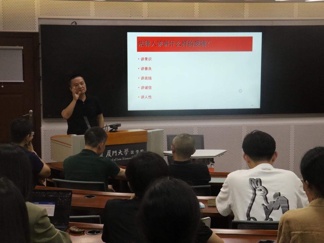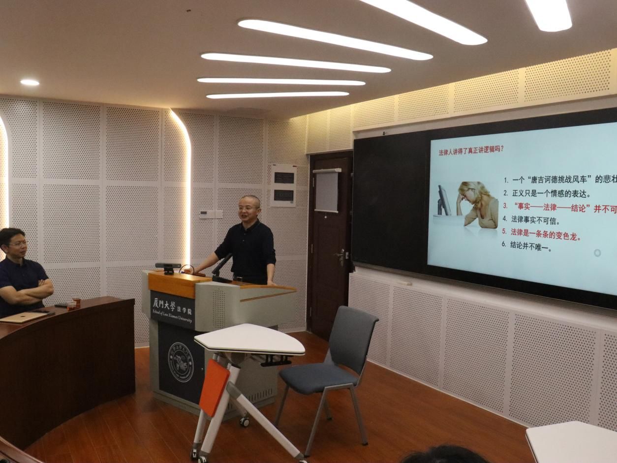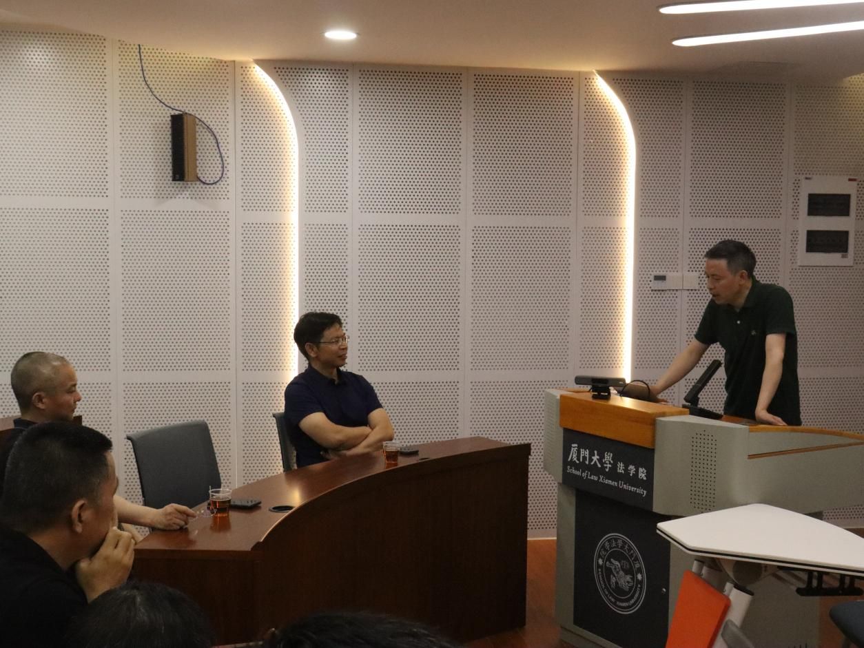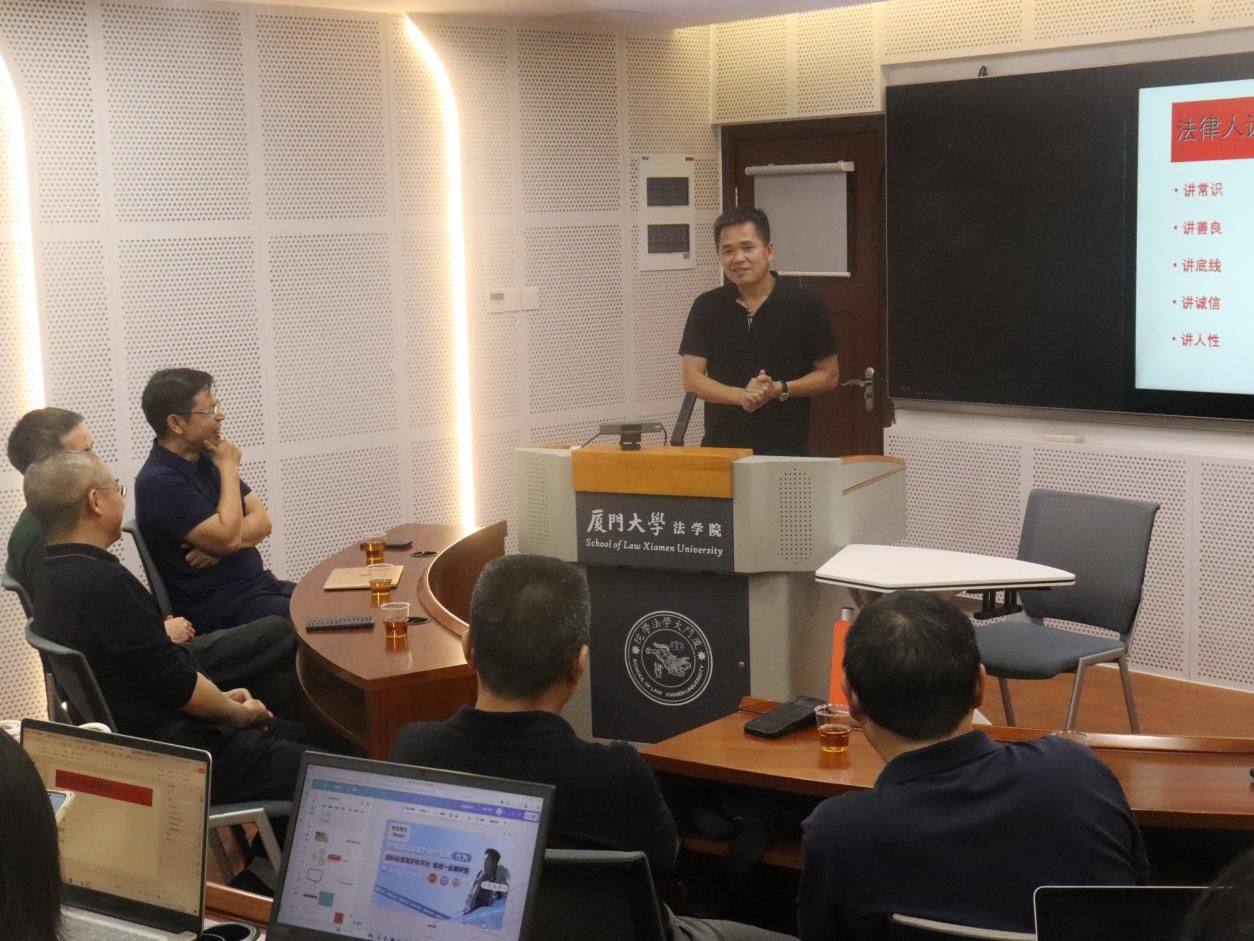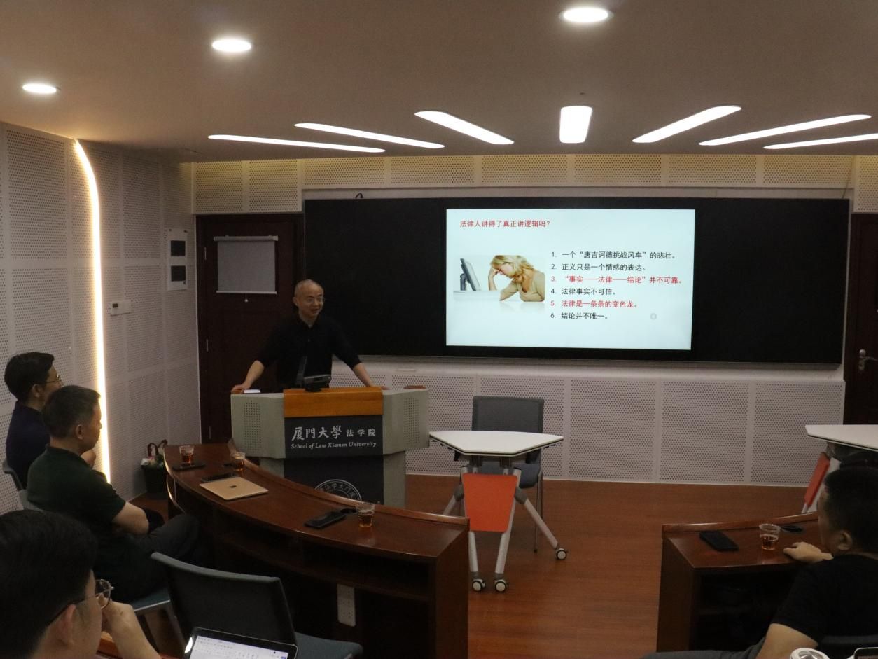 2025年5月23日晚19时至21时,受厦门大学法学院刘志云教授邀请,湖南大学法学院黎四奇教授、中南大学法学院丁亮华教授莅临我院,并于法学院C420会议室围绕以“法律人该如何讲逻辑”、“我国专门法院设置的规范路径”主题进行演讲与讨论。本次讲座由厦门大学金融法研究中心主办。