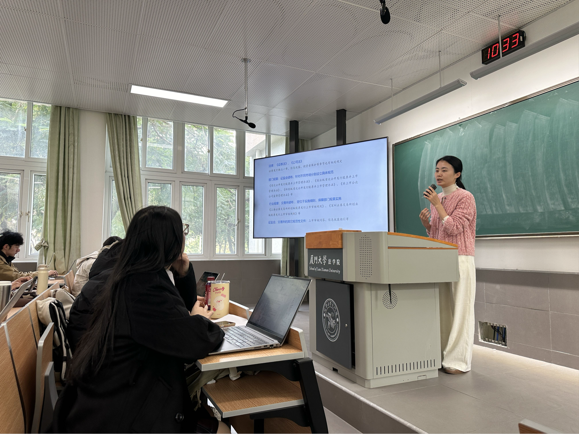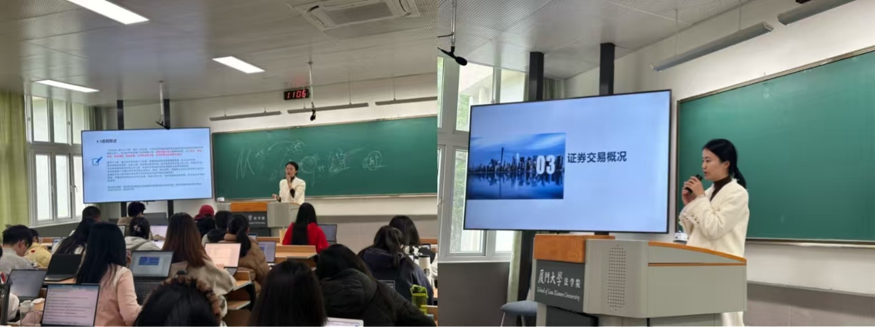 首先,证券法实务系列讲座的专业性和实践性非常强。谢春旭在证券行业积累了丰富的实践经验和深厚的专业知识,她的授课内容紧密围绕证券市场的实际运作情况展开。相较于传统金融课程侧重于理论讲解,这几次的课程实务性特征尤为突出。多年的证券实务经验为课堂带来了独特的实务视角,使得理论知识与实际操作之间的联系变得清晰直观,使同学们对资本市场的运作机制产生了更加深入的理解。