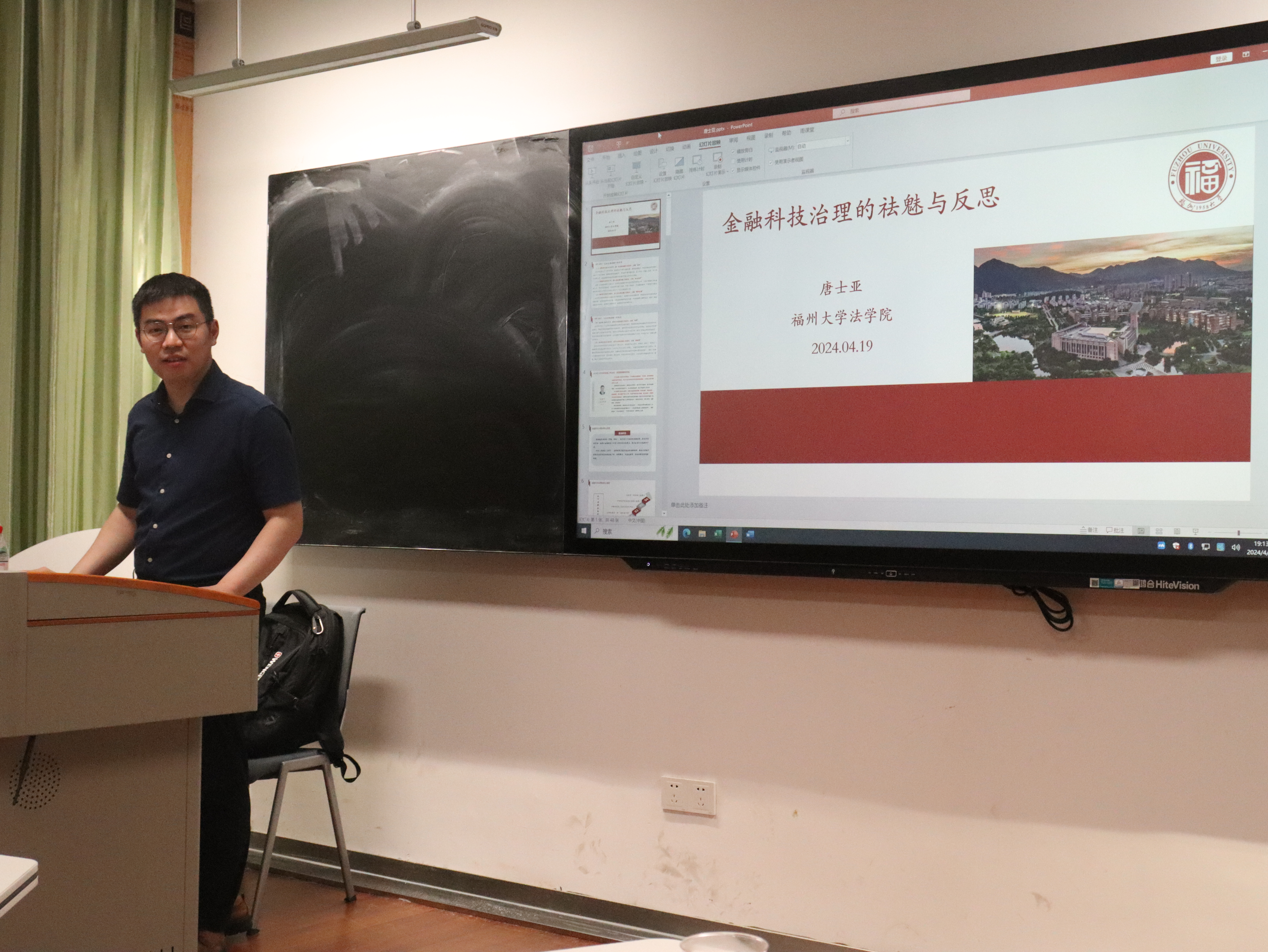 2024年4月19日晚,“青榕”金融法论坛第2期在法学院B521教室如期举行。本期讲座是厦门大学金融法研究中心与青榕资产管理公司学科共建合作项目“‘青榕’金融法论坛”第二讲。受厦门大学金融法研究中心刘志云教授的邀请,福州大学法学院唐士亚副教授作为本次讲座的主讲人,主讲题目为“金融科技治理的祛魅与反思”。讲座由金融法研究中心副主任史欣媛助理教授主持,李天相助理教授、燕星宇助理教授出席,硕博学生共计三十余人参加。
