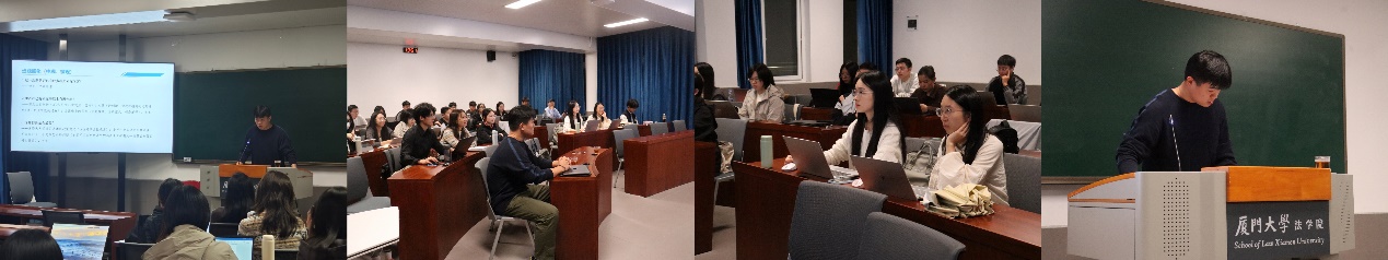 本期读书会的主题为“硕士研究生开题与论文写作经验分享交流会”,由厦门大学2022级经济法学博士研究生(直博生)刘毅楠主讲。本次讲座由金融法研究中心副主任史欣媛副教授主持,金融法中心本硕博同学近三十人参加了本次读书会。