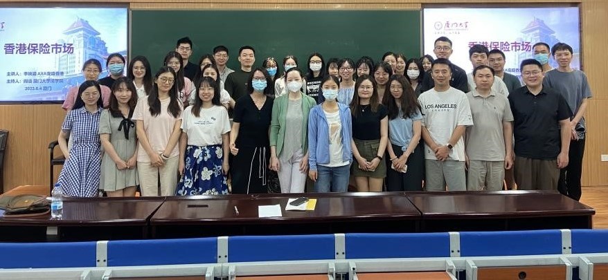 2023年6月4日上午,由来自AXA安盛香港的李映涵经理主讲的“香港保险市场”专题讲座在法学院B137教室顺利举行。此次讲座由厦门大学法学院助理教授阎语主持,选修非全日制保险法课程的研究生同学及部分民商法方向的研究生同学参加了本次讲座。主持人阎语老师首先对主讲人李映涵经理进行了详细介绍,在同学们的热烈欢迎中本次讲座正式拉开帷幕。