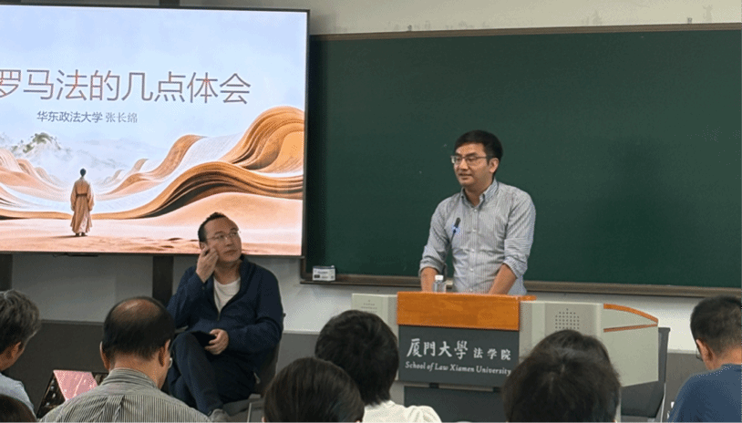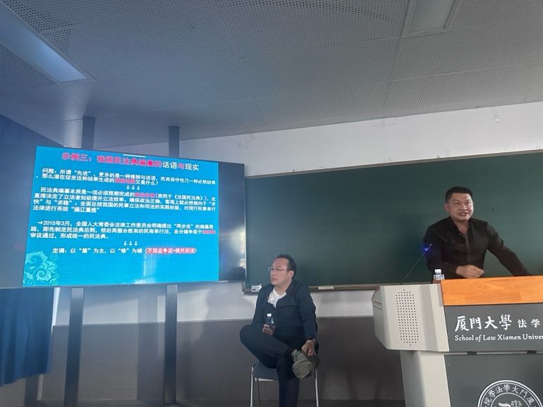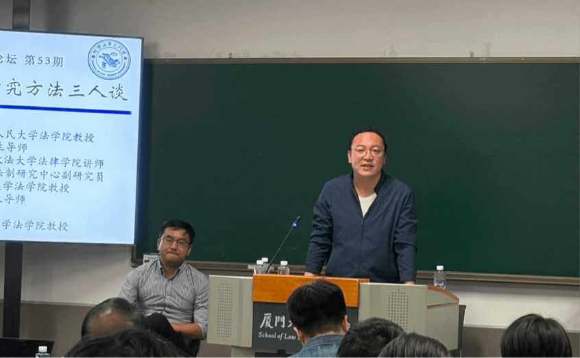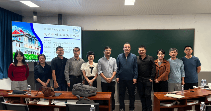 2025年11月1日下午,厦门大学法学院联合旭丰律师事务所举办的“民法学研究方法三人谈”讲座在法学院A304教室顺利举行。本次讲座特邀中国人民大学法学院法学院教授、博士生导师朱虎老师,华东政法大学法律学院讲师、涉外法制研究中心副研究员张长绵老师以及厦门大学法学院教授、博士生导师魏磊杰老师三位老师同台主讲,讲座由厦门大学法学院教授郑晓剑老师主持,法学院的吴旭莉、陈帮锋、齐云、傅雪婷等老师,旭丰律师事务所的部分律师以及三十多位本硕博学生,共同参与了讲座,现场座无虚席。
