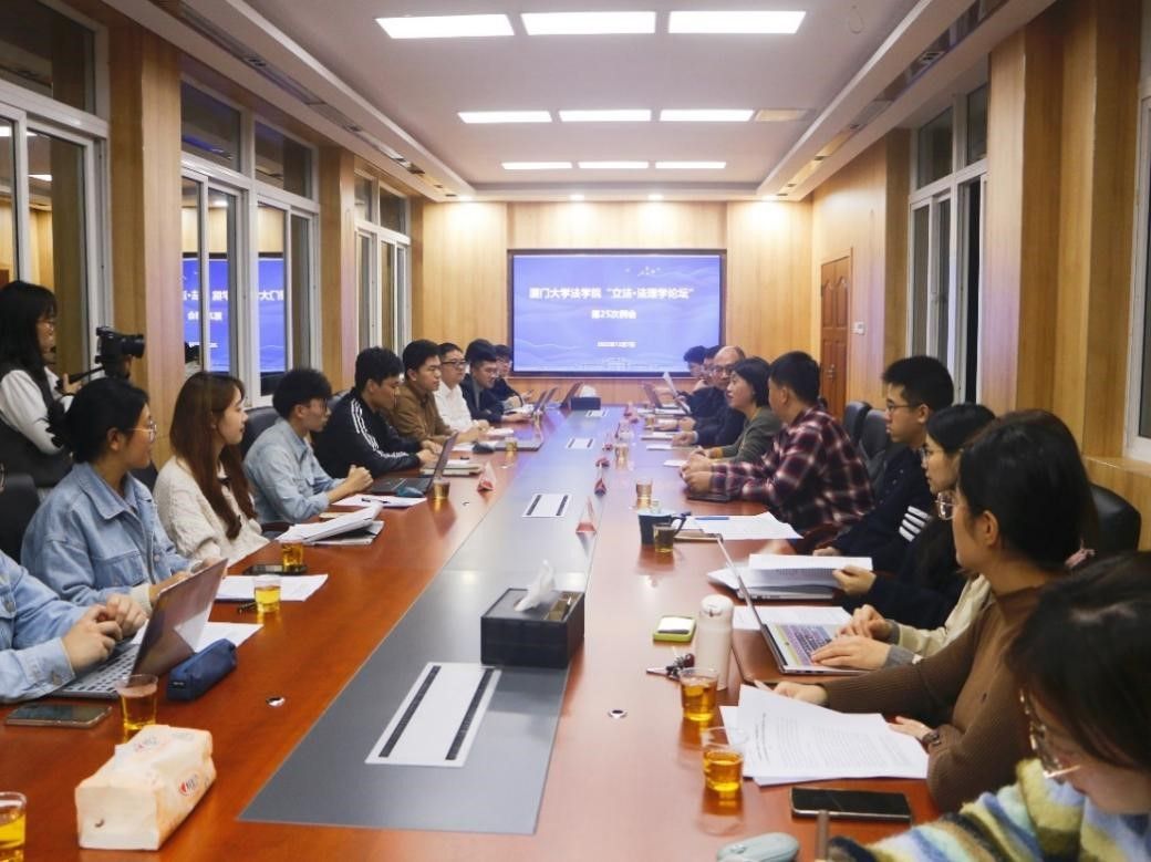 2022年12月7日晚,厦门大学法学院“立法·法理学论坛”第25次例会在法学院519会议室举行。本次例会由博士生肖恒主持,博士生李铮、郭宝进行汇报。宋方青教授、郑金雄教授、姜孝贤助理教授、程庆栋助理教授、王翔助理教授、许瑞超博士后以及二十余位法学理论方向的博士生和硕士生参与了本次例会。
