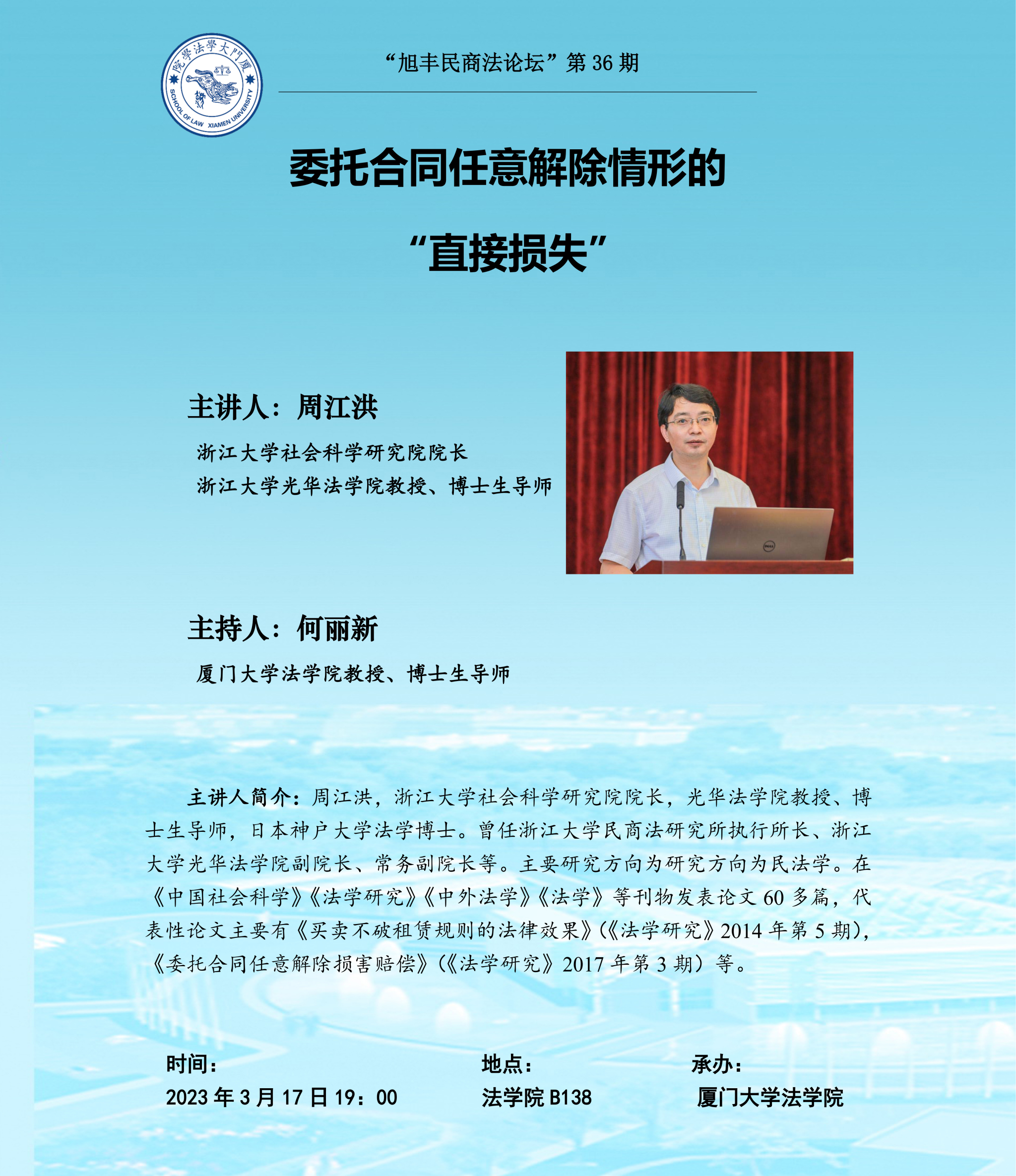 讲座名称:“旭丰民商法论坛”第36期:委托合同任意解除情形的“直接损失”