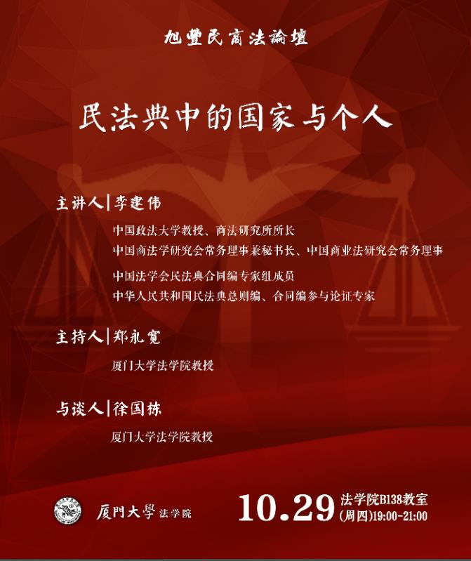 讲座内容简介:从民法典五次编撰中深刻剖析国家与个人的逻辑关系,着力讲解民法典编撰的意义、历史背景,探寻民法典颁布与市场经济基础、政治社会基础之间是互为表里,从民法的视角深入诠释国家与个人之间辩证的私法关系。
