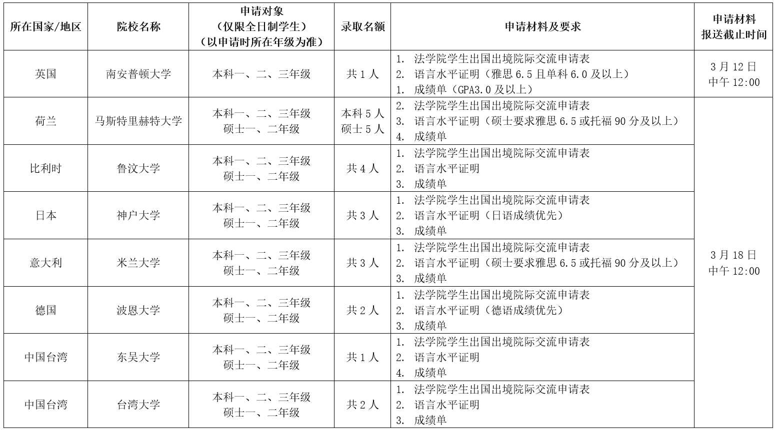 (注:受疫情影响,各国各校政策变动频繁,故暂时无法确定秋季学期交流项目是否可以正常进行,以实际情况为准,请同学们做好项目取消的准备,谨慎申请。)