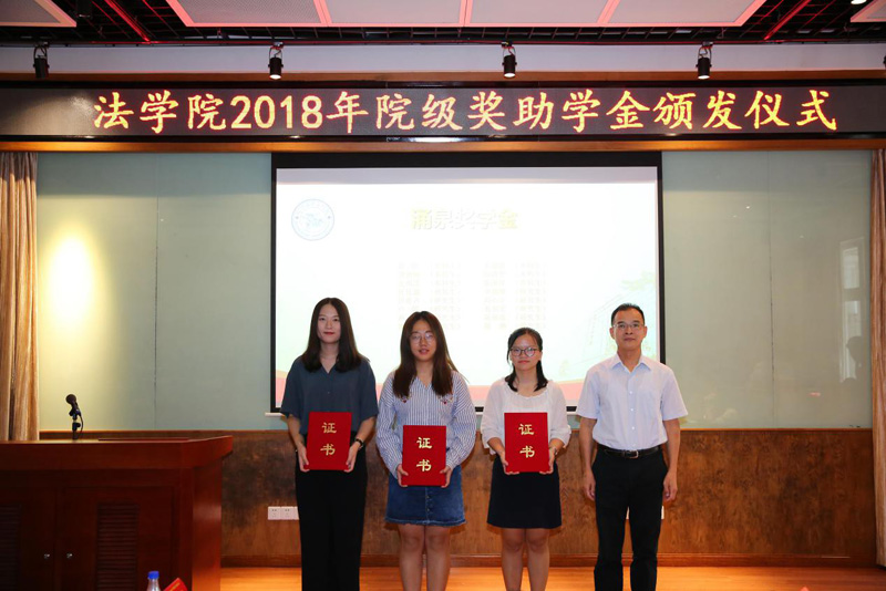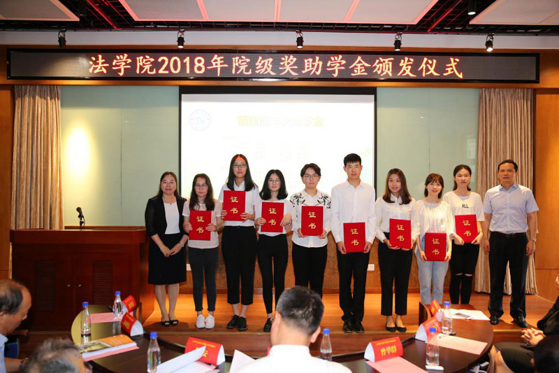 5月31日下午,厦门大学法学院2018年院级奖助学金颁发仪式于在法学院B138召开。出席本次仪式的嘉宾有陈安教授,曾华群教授,齐树洁教授,福建旭丰律师事务所党总支书记方磊,福建旭丰律师事务所主任王桂英,法学院本科1989级校友、工商银行思北支行副行长廖卫红,中国人民财产保险股份有限公司厦门分公司理赔事业部、法律部总经理邓小荣,福建拓维律师事务所首席合伙人许永东,福建拓维律师事务所律师胡春芳,法学院2001级民商法硕士、校友查达来,北京观韬中茂(厦门)律师事务所执行主任李焰盛、执行合伙人安寿志、朱玥、北京大成(厦门)律师事务所高级合伙人张贵茂,法学院党委书记李智勇、法学院党委副书记张伟、法学院副院长李国安教授;以及法学院师生代表、获奖和受资助学生代表。仪式由法学院党委副书记郭锦星主持。