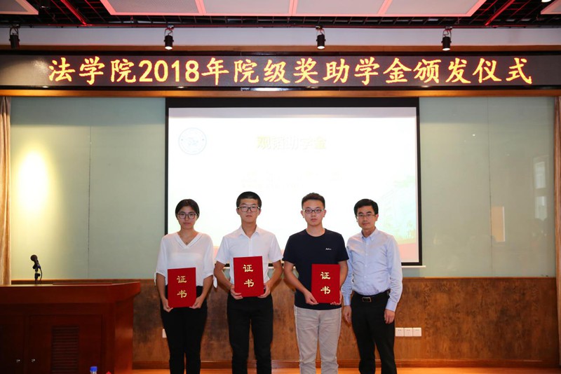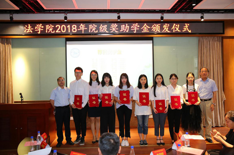 据悉,此次仪式上颁发的是法学院2017年院级奖助学金和2018年院级奖学金,包括翰因奖学金、普衡奖助学金、涌泉奖学金、福建旭丰奖助学金、王汉斌奖助学金、鸿雁奖助学金、荐贤奖学金、拓维奖学金、陈秀叶奖助学金、达来奖助学金、观韬助学金、勤学90助学金、91国经助学金,其中法学院2017年度奖助学金项目有18项,受资助人数111人,资助总额26.55万人民币加1万美元,奖学金52人,助学金59人;法学院2018年度奖学金项目有10项,受资助人数50人,资助总额11.1万人民币加5400美元。