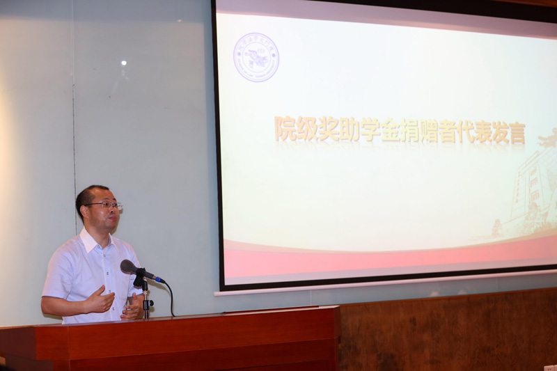 首先由法学院党委书记李智勇发表院领导致辞。李智勇书记对支持法学院教育事业的资助者表示诚挚的感谢,对院级奖助学金的获得者表示由衷的祝贺。李智勇书记指出,奖助学金不只是物质的奖励,也是精神上的激励,并对同学们提出三点希望。一是希望同学们立鸿鹄志,做奋斗家;二是希望同学们练真本领,做实干家;三是希望同学们怀感恩心,尽大爱责,把今天接受的滴水之恩转化为明天进步的动力,勤奋学习,不懈奋斗,把自己培养成为德法兼修的高素质的社会主义法治人才。