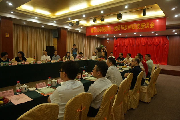 法学院90周年院庆工作紧锣密鼓地继续推进。9月4日法学院院长宋方青、副院长何丽新、党委副书记郭锦星、齐树洁教授、黄健雄教授、陈欣副教授、团委书记高斌和厦门大学校友会法律分会秘书长李毅阳等一行人前往海上丝绸之路的起点泉州,走访泉州院友与泉州院友举行座谈会。这是继走访珠海、澳门、香港、深圳、杭州、上海、青岛、北京等地院友后,学院领导和老师为了加强学院与院友之间的联系和合作,再一次共同走出去,进一步推进了法学院90周年的院庆工作。