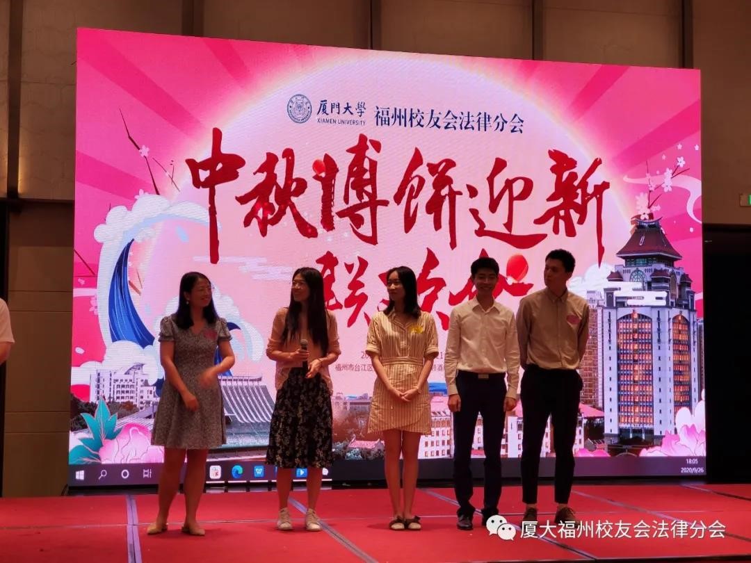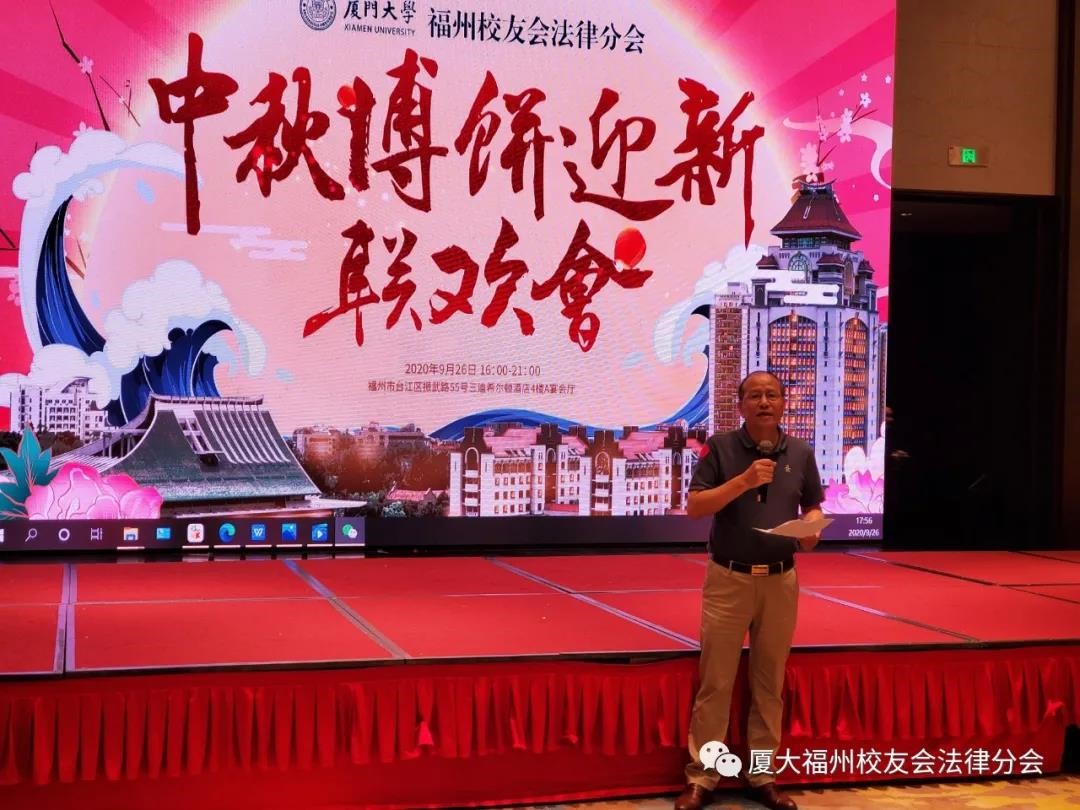 2020年9月26日,厦门大学福州校友会法律分会举办“中秋博饼迎新联欢会”,喜迎新校友,欢聚老校友,共庆中秋佳节。法学院党委书记许和山、副书记郭锦星、副院长朱晓勤等领导亲临会场送上祝福。厦大福州校友会学长叶文振,福州校友会副会长兼法律分会会长陈壮,各大政法学院福州校友会代表,在榕院友代表100余人共同参加了联欢会。