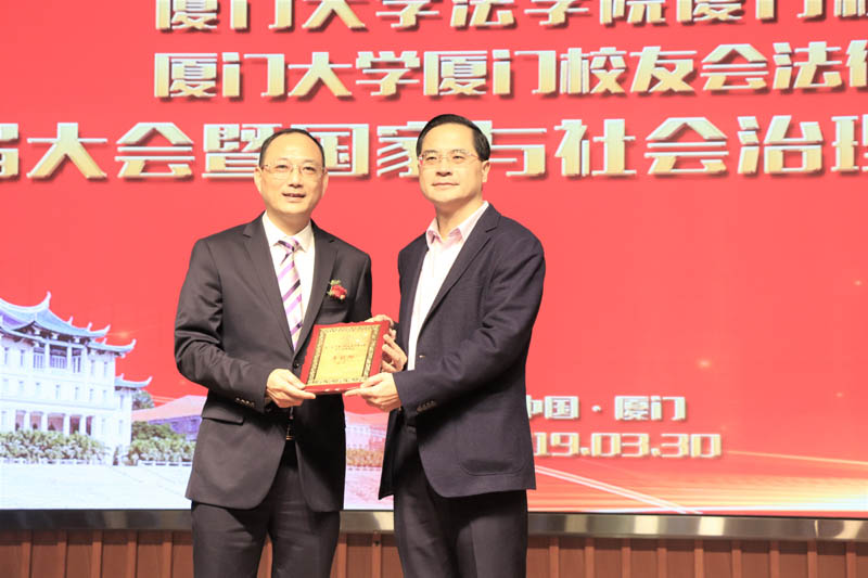 在本次会议上,法学院1988届校友李毅阳当选为厦门大学法学院厦门校友会暨厦门大学厦门校友会法律分会第二届理事会会长。厦大副校长、校友总会副理事长邱伟杰出席、致辞并颁授会长牌。