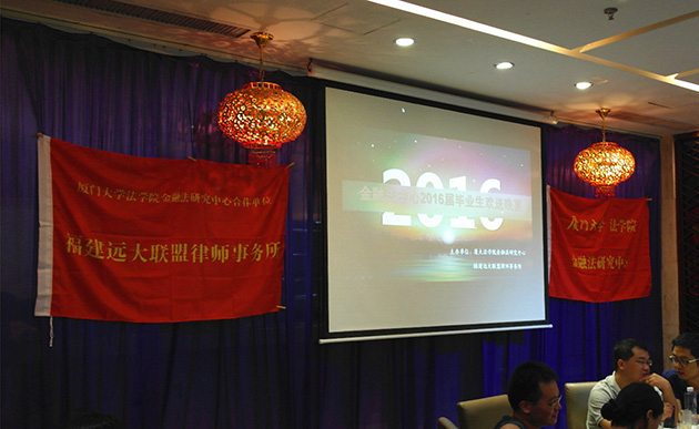 7时许,欢送晚宴拉开帷幕。伴随着鲜花与掌声,《凤凰花开的路口》悠扬奏响,满载记忆的摄影张张回放。那一天,我们加入金融法班这个温暖家庭;那一天,我们与远大律所结下不解之缘;那一天,是谁如此幸运喜博电脑归去;那一天,我们乘上奔腾的游艇破浪而行……那一天的过山车吓不到我们勇敢的心,那一天的烟波微茫沉醉了多少迷情,那一天的美食俘虏了谁的味蕾,那一天的登高呼唤了谁的希冀……我们还记得,那一个又一个的晚上,师兄师姐们不辞辛劳,为我们传道解惑;我们还记得,那数不清的日日夜夜中,我们朝夕与共,苦乐同舟……