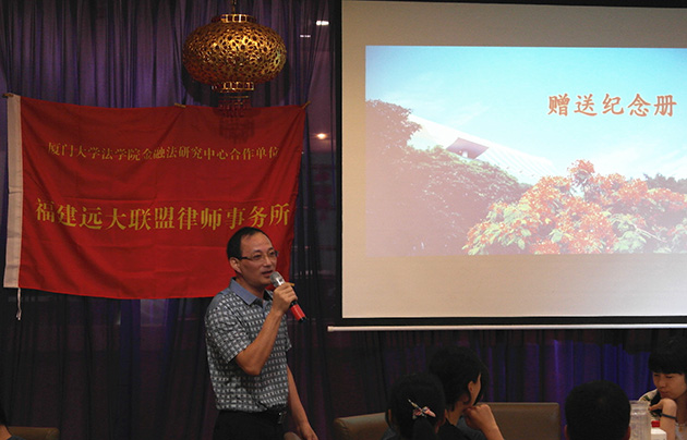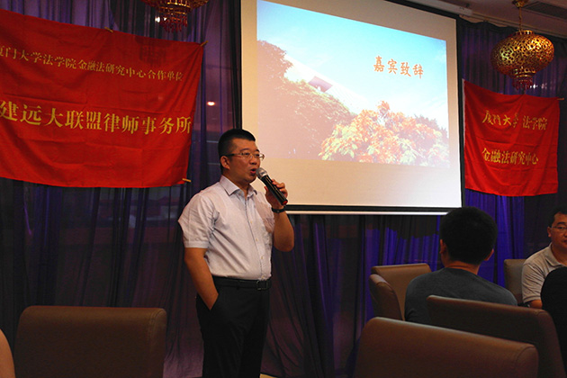 随即,远大律师联盟律所的陈继东主任作为嘉宾献上致辞,也为已经毕业的师兄师姐和还未毕业的我们传递了他的心声。陈主任由衷感慨与金融法研究中心合作以来的收获和喜悦,也衷心祝愿金融法研究中心能和远大律所一起进步、一起成长,祝愿金融法研究中心的学子们学业有成、前途伟岸!