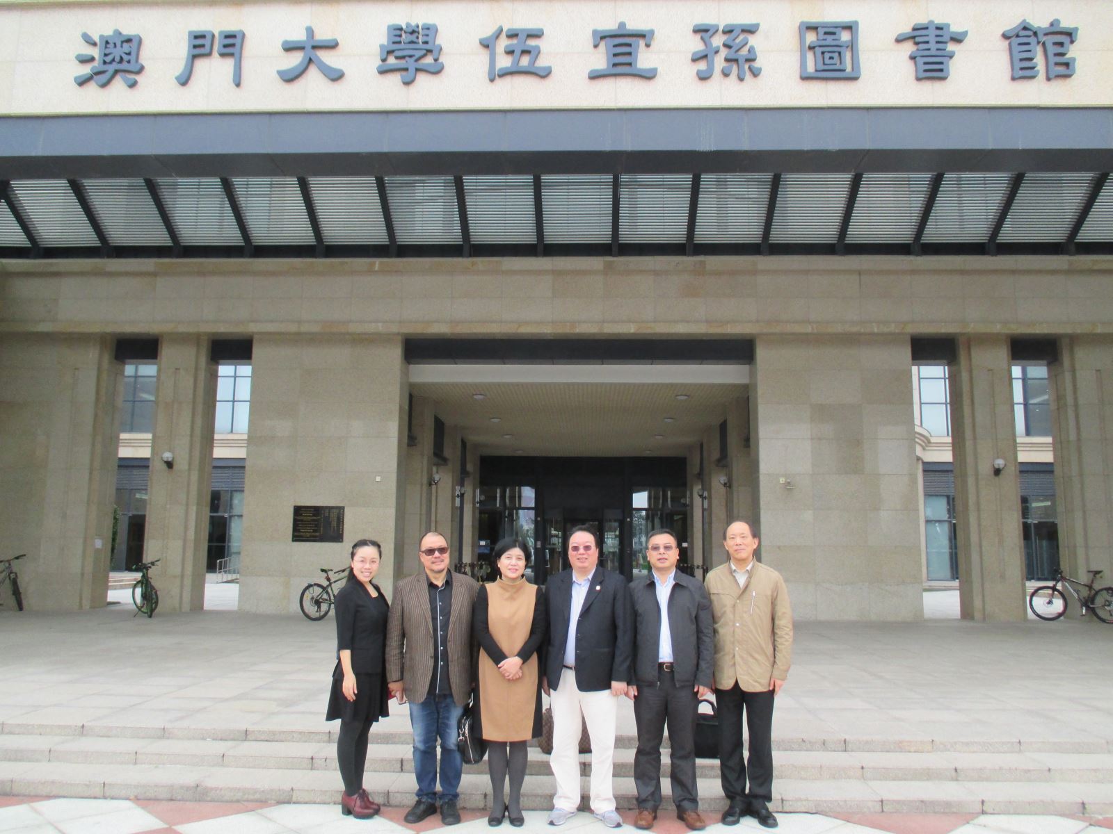 3月28日下午,参访澳门大学。左二:澳门校友会理事长谢广汉,右三:澳门大学校长助理张学森