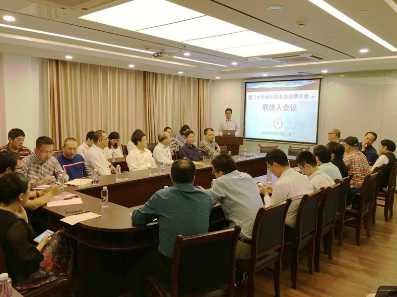 2016年11月5日,依照2016年8月31日《厦门大学福州校友会关于筹备设立法律分会的通告》的要求,为广泛征求意见和传达部署下一步工作,筹备组如期在福建君立律师事务所组织召开校友联络人会议。