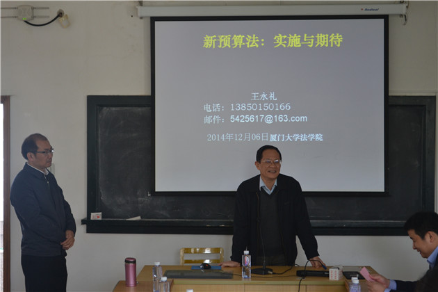 2014年12月6日上午9:30时,福建省人民政府副秘书长王永礼先生,应邀在我院B520教室做题为《新预算法的实施与期待》的学术讲座。厦门大学国际税法与比较税制研究中心(CITACT-XMU)廖益新教授主任主持了本次讲座,法学院财税法教研室李晓辉老师以及法学院财税法方向的硕博士研究生和部分本科生参加了本次讲座。