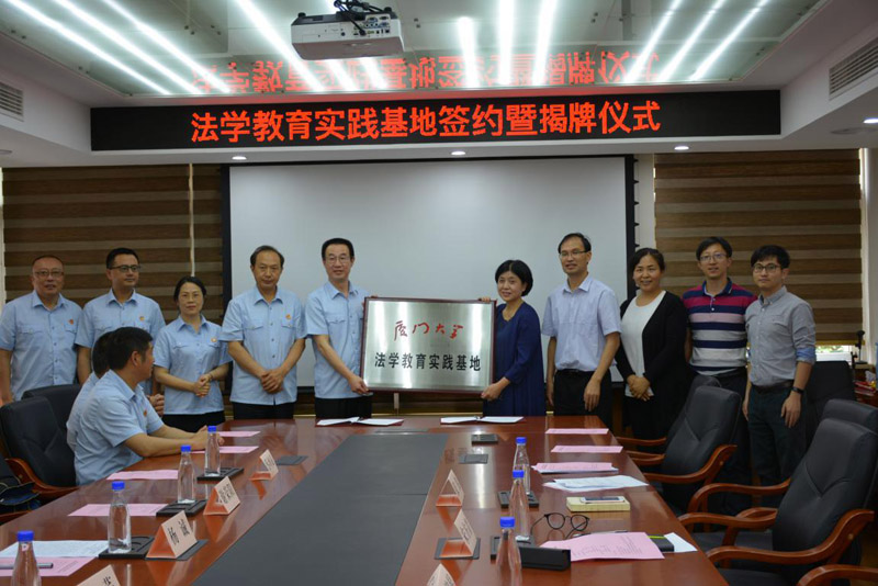 宋方青院长为“厦门大学法学院法学教育实践基地”授牌,并向杨诚院长赠送厦门大学法学文库系列丛书。