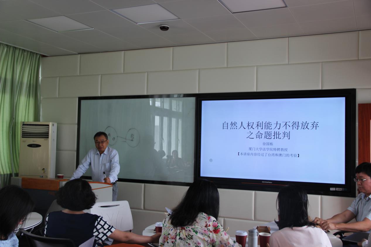 徐国栋教授作为主讲人,其主题是批判自然人权利能力不得放弃之命题。围绕该主题,徐国栋教授首先展示了“权利能力不得放弃”之命题在教材中的学说和观点,并追根溯源,找到了这些学说的立法起源。于是,徐国栋教授主要围绕《奥地利民法典》第十六条对立法起源进行阐述和讲解,并介绍了各地区立法对该条文进行限缩的情况。最后,徐国栋教授以“出家”为例,介绍了权力能力不能放弃之命题与现实生活的矛盾。