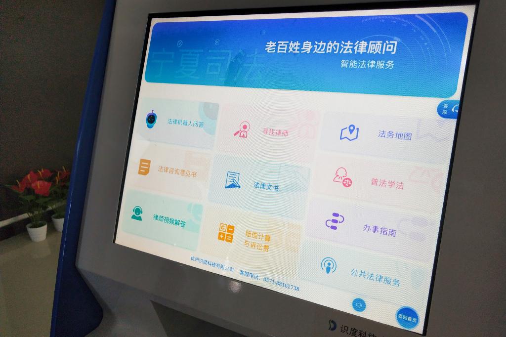 工作人员马璇向实践队队员们详细演示了正在进行试点的银川公共法律服务人工智能自助机,该智能机器人具有法律机器人问答、自动生成法律文书、远程律师视频解答等功能,未来设想该智能机器人将覆盖偏远乡镇,以解决偏远贫困群众的法律需求,并一定程度上缓解自治区各地经济社会发展差异较大、律师分布不均匀的现状及解决机构事多人少问题。