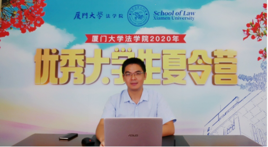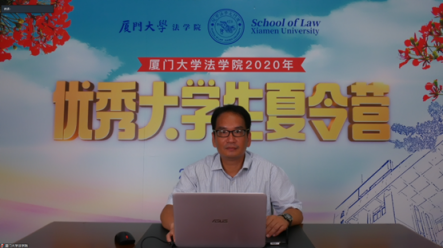 郑晓剑副院长在开营式上作学科介绍。郑副院长通过网络直播的方式带领大家领略了厦大美丽的校园环境、深厚的人文底蕴,同时对法学院学科建设、师资队伍建设、专业设置、人才培养情况进行了详细的介绍,令营员们充分感受到我院对学生专业能力培养和综合素养提升的全方位支撑。