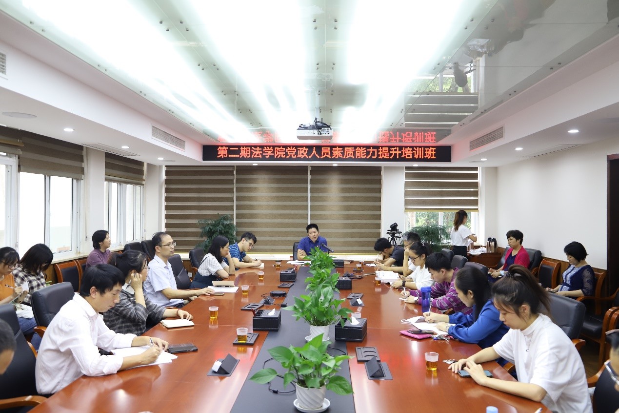 为深入学习习近平总书记在2020年中央党校(国家行政学院)中青年干部培训班开班式上发表的讲话精神,加强学院党政管理人员队伍建设,10月16日下午,法学院第二期法学院党政人员素质能力提升培训班暨法学院党委“廌园理论学堂”第一讲于220会议室顺利开讲。法学院党委书记许和山为法学院全体行政人员做专题讲座。
