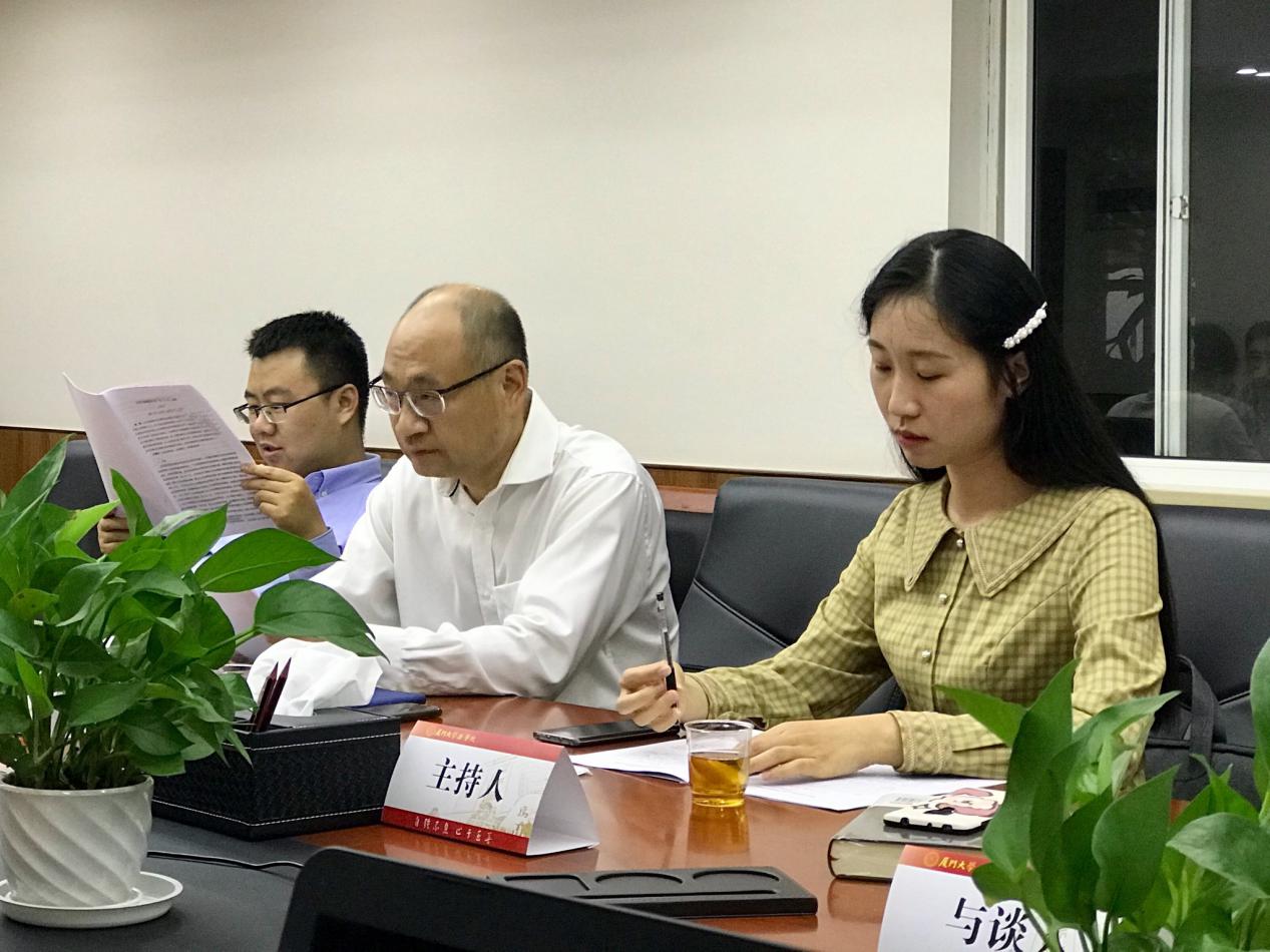 为促进学术交流,厦门大学法学院“立法•法理学”第10期读书会于2020年11月18日在法学院B220会议室举行。本次读书会由博士生李炳辰主持,博士生张向宇、龚李玲汇报论文。郑金雄、程庆栋老师出席了本次会议,与各位参会的硕士生、博士生一同研究探讨。