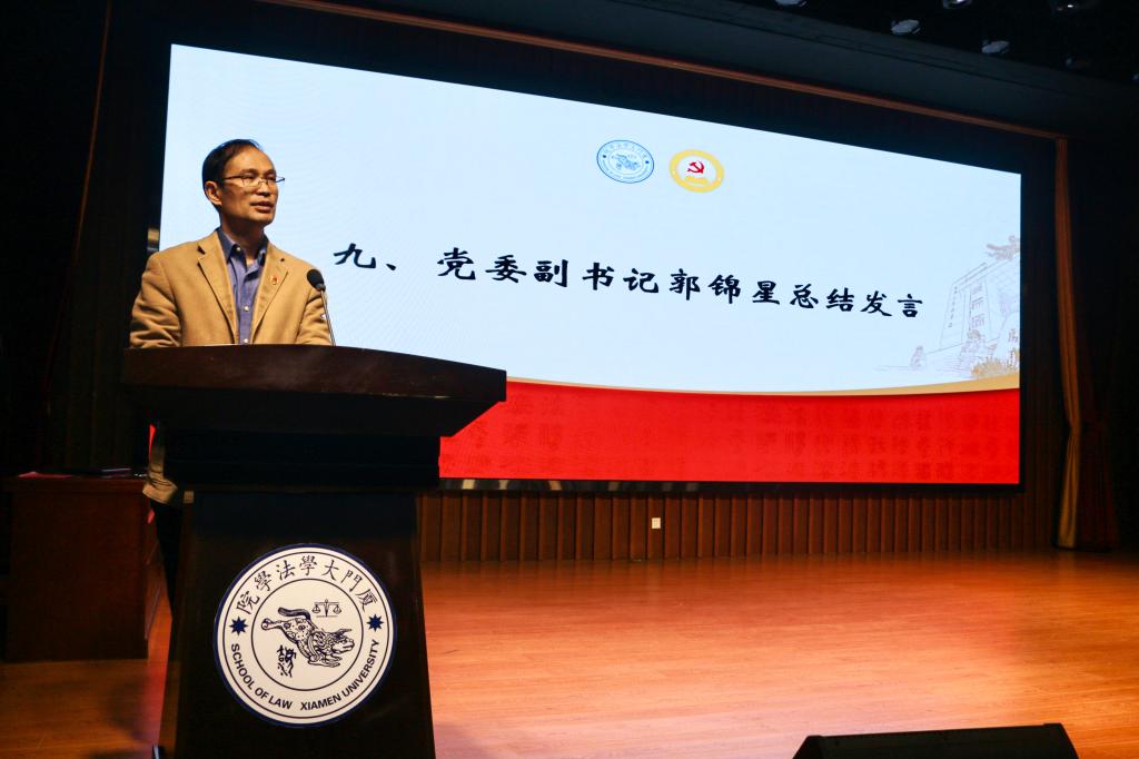郭锦星在大会上作总结讲话。郭锦星对研习社在过去一年中取得的丰硕成果表示肯定,对研习社第三届骨干成员们的辛勤付出表达了诚挚感谢。郭锦星表示,研习社经过三年多的发展,在各级领导的关心支持与各位专家、老师的悉心指导下,已经逐渐成长为一个规范、成熟的优秀学生社团,成为了法学院开展研究生党建工作的重要抓手。郭锦星对新一届研习社的发展提出展望与期待,希望新一届研习社能够继往开来,在已有好的基础上,充分发挥理论性学习社团的示范引领和学生党员的先锋表率作用,进一步夯实社团基础建设,深化理论学习成效,创新社团活动形式,将政治理论学习、党内法规研究和法学专业学习紧密结合,学深悟透习近平法治思想,努力将研习社打造成为全国知名的党内法规理论研究型社团、依托理论研究的实践创新型社团、推动基层党建工作的组织创新型社团。