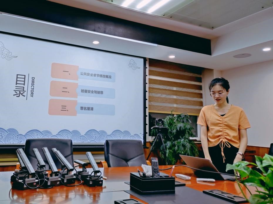 第一位出场的陈金同学主要就妨害安全驾驶罪的修改进行了解读。她从“车闹”现象频发、同案不同判、罪责刑不均衡等妨害安全驾驶罪的修改背景出发,针对“危及公共安全的界定”、“妨害安全驾驶的行为方式”、“妨害安全驾驶的主观要素”等进行了细致的构成要件解析。陈金同学汇报结束后,大家就妨害安全驾驶罪与以危险方法危害公共安全罪的区分问题进行了热烈的讨论。