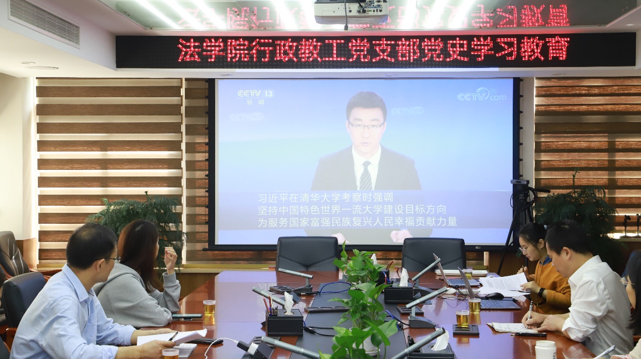 4月30日,法学院行政教工党支部在B220会议室举行党史学习教育。行政教工党员围绕“习近平总书记在清华大学考察时重要讲话精神”和“新民主主义革命时期历史”两方面内容开展学习。