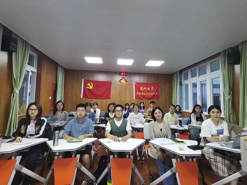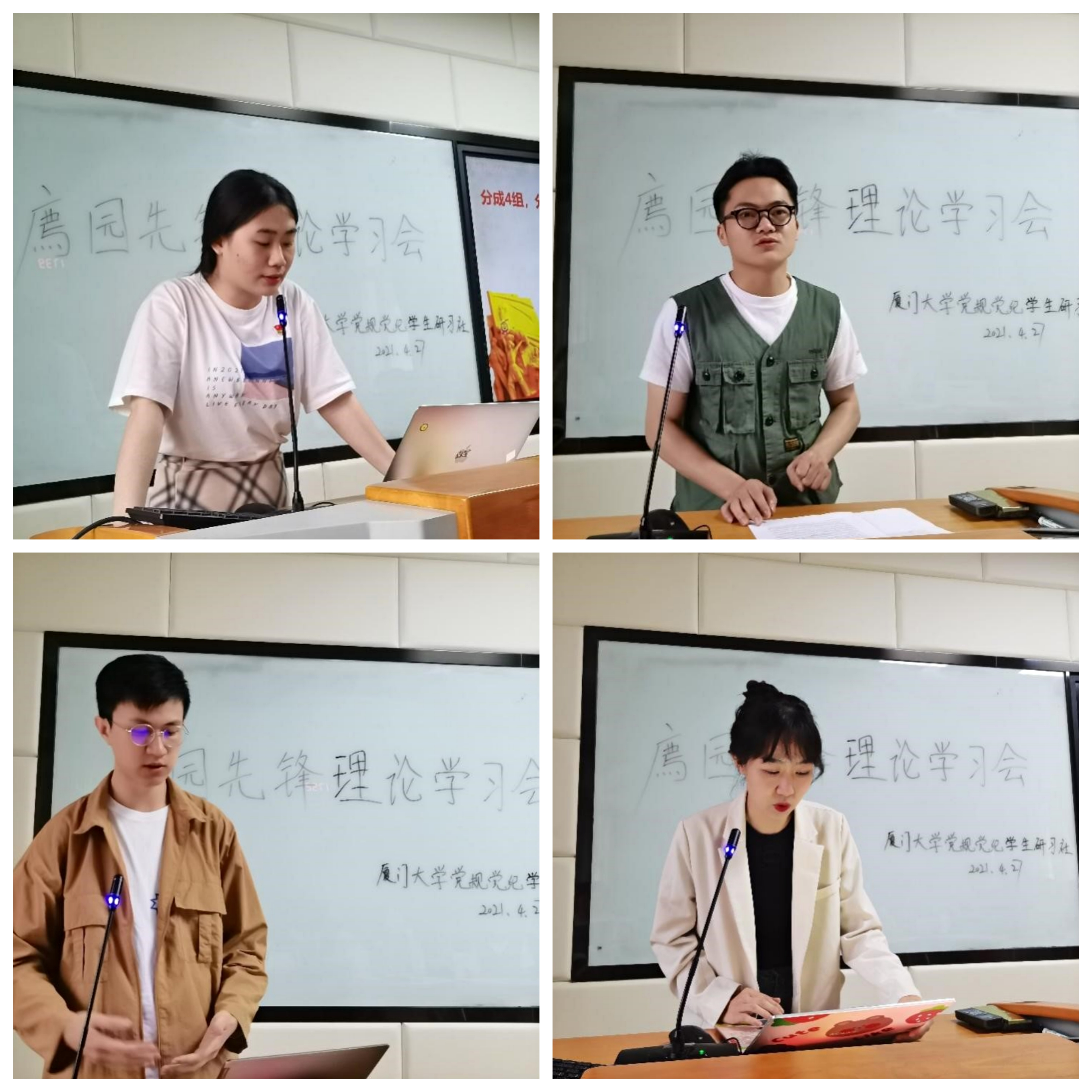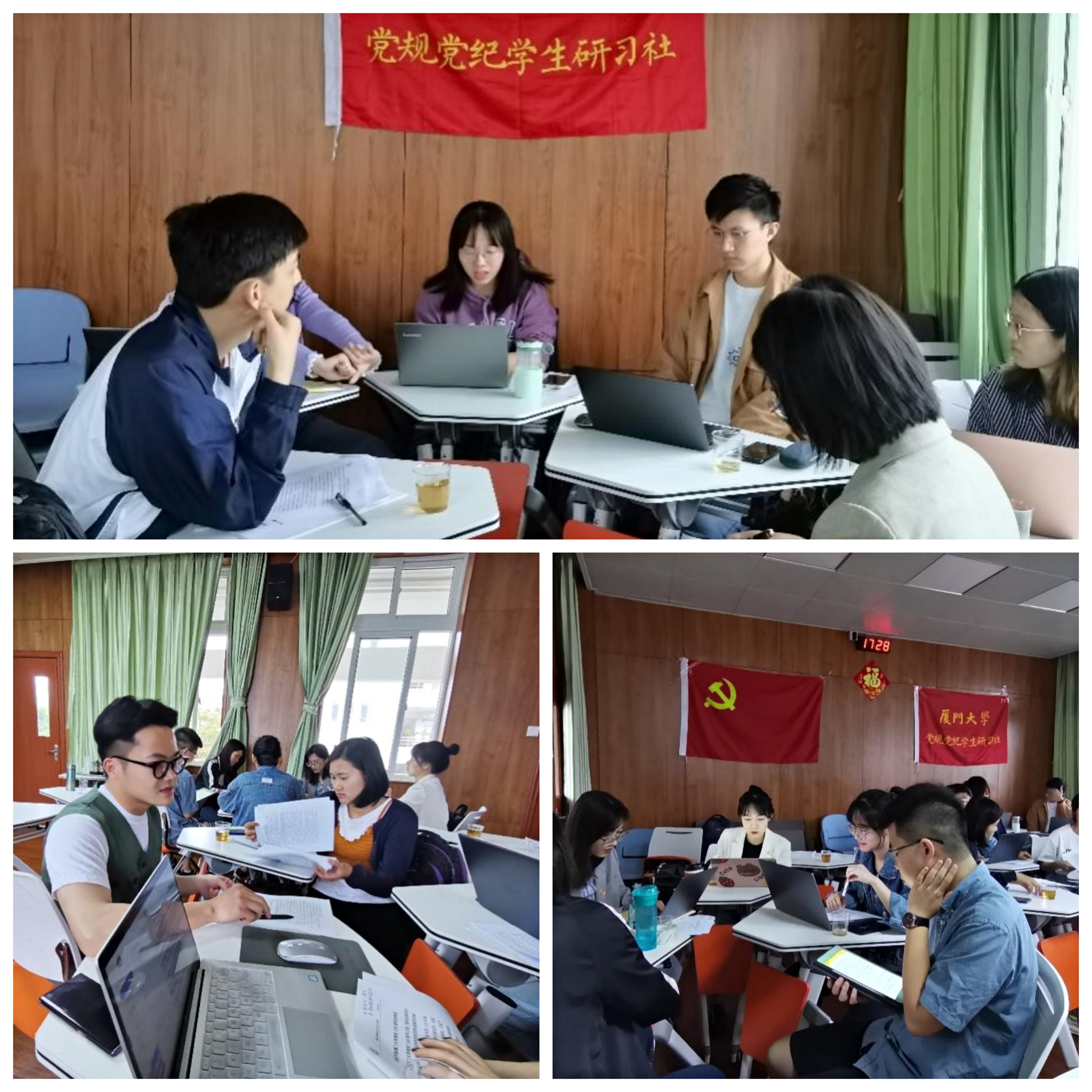 立身百行,以学为基。为更好地开展党史学习教育,实现党史的充分学习和交流分享,夯实基层党建根基,4月27日下午,厦门大学党规党纪学生研习社于法学院B521多媒体教室举行4月廌园先锋理论学习会。研习社骨干成员,指导老师、法学院团委副书记、研究生辅导员周晓牧参加学习会。