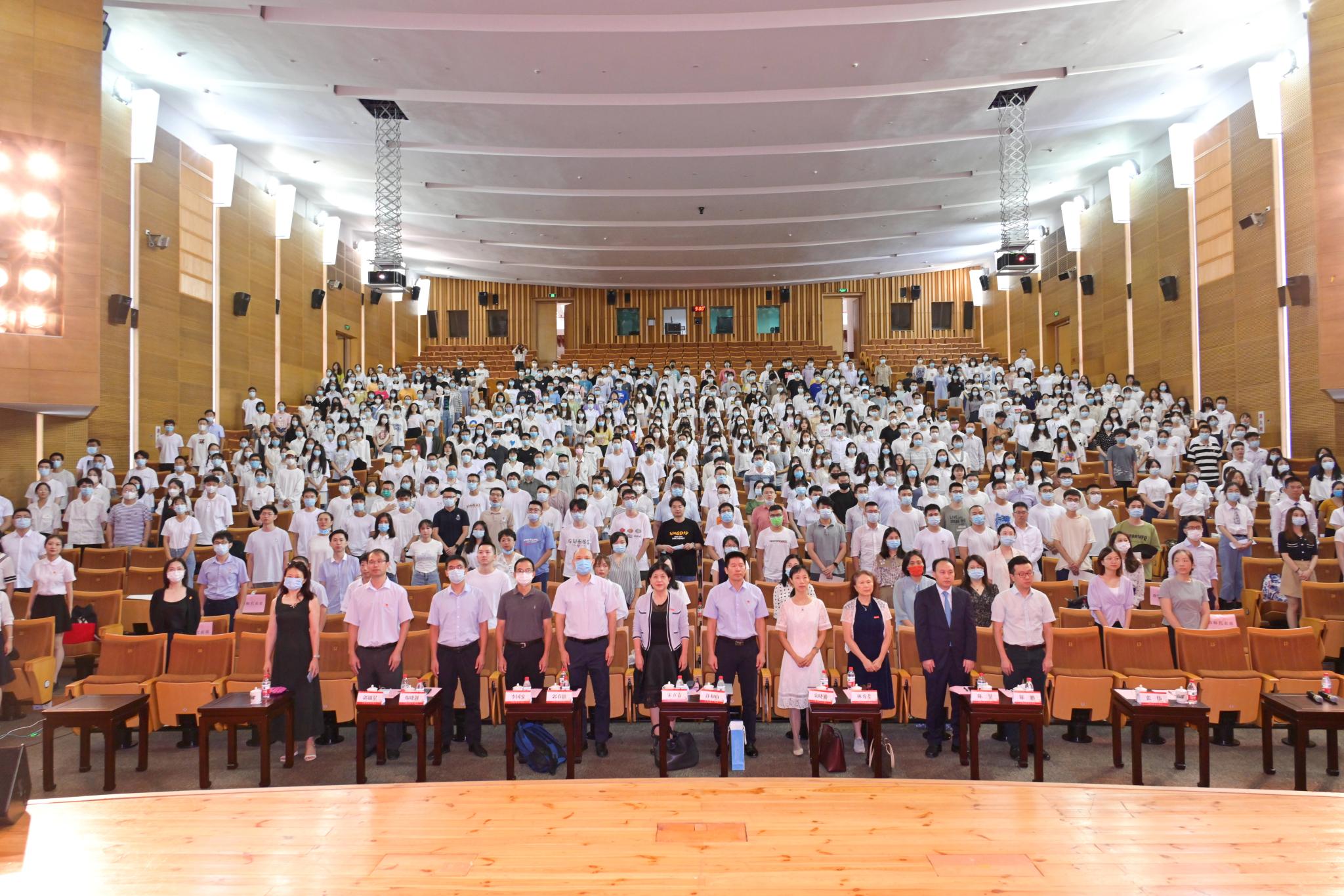 开学典礼第二阶段,法学院党委书记许和山以“初心使命与时代担当”为题,讲授了“新生第一课”。许和山书记结合自身经历,分享了作为共产党人的初心和使命,激励新生们学习党史,常学常新。他指出,党的百年历史就是一部践行党的初心使命的历史。百年来,中国共产党人始终坚守为中国人民谋幸福、为中华民族谋复兴的初心和使命,使得中华民族从建党的“开天辟地”,到新中国成立的“改天换地”,再到改革开放以来的“翻天覆地”,直至今日之“惊天动地”。他强调,新时代的中国共产党人更要砥砺初心使命,唯有不忘初心使命并为之不懈奋斗,才能增信、明理、崇德、力行,才能行稳致远。最后,许和山书记寄语全体2021级新生,希望同学们将青春奋斗融入党和人民事业,成为中华民族伟大复兴的先锋力量,以实现中华民族伟大复兴为己任,增强做中国人的志气、骨气、底气,不负时代,不负韶华,不负党和人民的殷切期望!