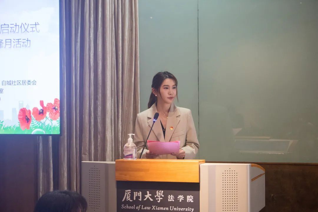 启动仪式上,思明区禁毒办专职副主任黄刚毅、滨海街道二级调研员季仲前和法学院党委副书记郭锦星就禁毒教育的重要性和大学生禁毒志愿者讲师团成立的意义发表讲话,厦门大学法学院学生代表、2020级硕士研究生刘庆进行了发言。
