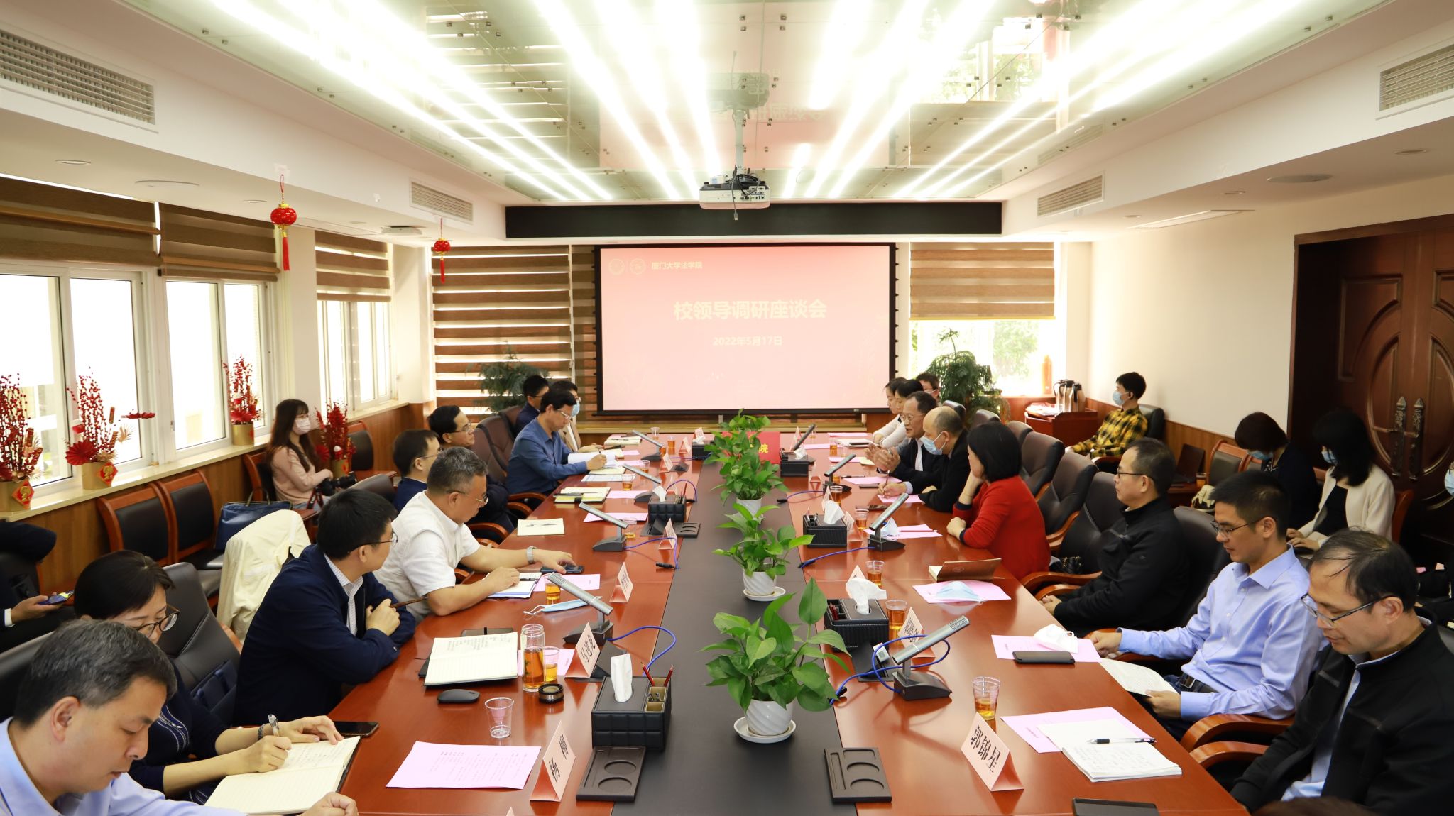 5月17日上午,张宗益校长一行莅临法学院,就法学学科建设展开调研座谈。厦门大学副校长邱伟杰、学校办公室、人事处、党委政策研究室、发展规划办公室、学科建设办公室、教务处、社会科学研究处等部门负责人陪同调研。法学院领导班子成员,学科带头人、教师代表等参加座谈。