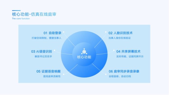 学生分别模拟双方当事人、审判人员在线开庭审理;感知仿真平台通过即时同声智能语音识别、在线电子签名、同步录音录像等互联网信息技术在线上开庭审理中的提质增效作用。