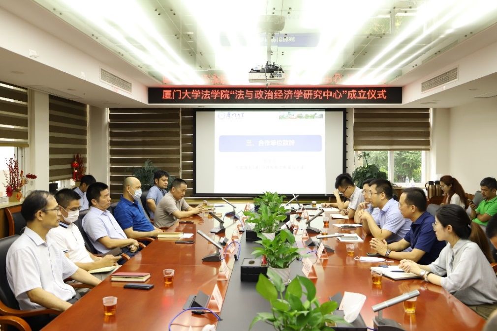 2022年7月15日,厦门大学法学院法与政治经济学研究中心(以下简称“中心”)成立仪式在法学院B220会议室隆重举行。厦门大学法学院党委书记许和山、北京盈科(厦门)律师事务所(以下简称“盈科厦门律所”)执行主任张有为分别致辞,中心主任毛海栋介绍了中心的基本情况,中心副主任、盈科厦门律所管委会主任郭元律师和厦门大学法学院刘连泰教授做了精彩发言。来自厦门大学法学院和盈科厦门律所的三十多位老师、律师和学生出席了成立仪式。成立仪式由中心副主任、厦门大学法学院陈鹏教授主持。