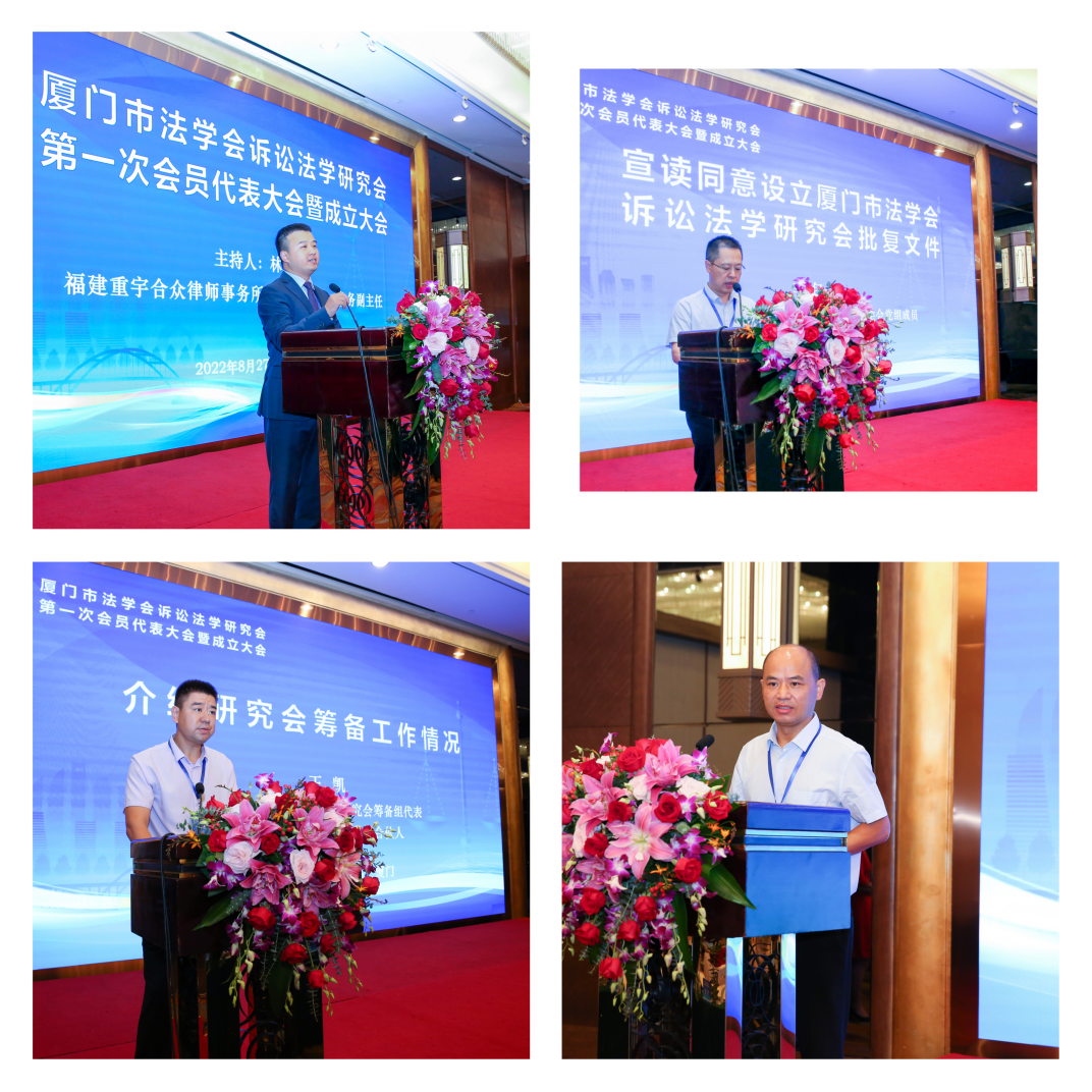 8月27日,厦门市法学会诉讼法学研究会正式成立。会议由福建重宇合众律师事务所党总支书记、常务副主任林洪伟主持,厦门市委政法委委务会议成员、市法学会党组成员、市法学会副会长兼秘书长李包明宣读了成立批复,厦门大学法学院副院长朱晓勤教授,中国刑事诉讼法学研究会会长、深圳大学特聘教授卞建林教授,市委政法委委务会成员、市法学会党组成员、专职副会长吴少鹰到会祝贺并致辞。会议通过了研究会章程,选举产生了首届理事会成员。