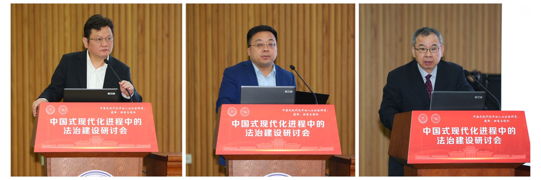 议题一为“中国式现代化的法理探析”,由厦门大学徐崇利教授主持。复旦大学孙笑侠教授作题为《近代中国法治化初期的若干悖论》主题报告,他从法治化的动力、法治化的诱因、法治化的进程、法治化的知识话语、司法定位与法治化的主体内心等方面论述近代中国法治化初期需要解决的有关问题。华东政法大学马长山教授作题为《数字法治的“中国模式”》主题报告,他从中国式的法治道路、数字法治的核心机制、数字法治的主要难题、数字法治的建设路径等方面阐述数字法治的“中国模式”。华东政法大学胡玉鸿教授作题为《全过程人民民主的权利意蕴》主题报告,他认为民主与法治密不可分,全过程人民民主与权利联系紧密、丰富了宪法文本之外的民主权利、突出了人民群众民主权利的广泛性、连续性、不间断性。