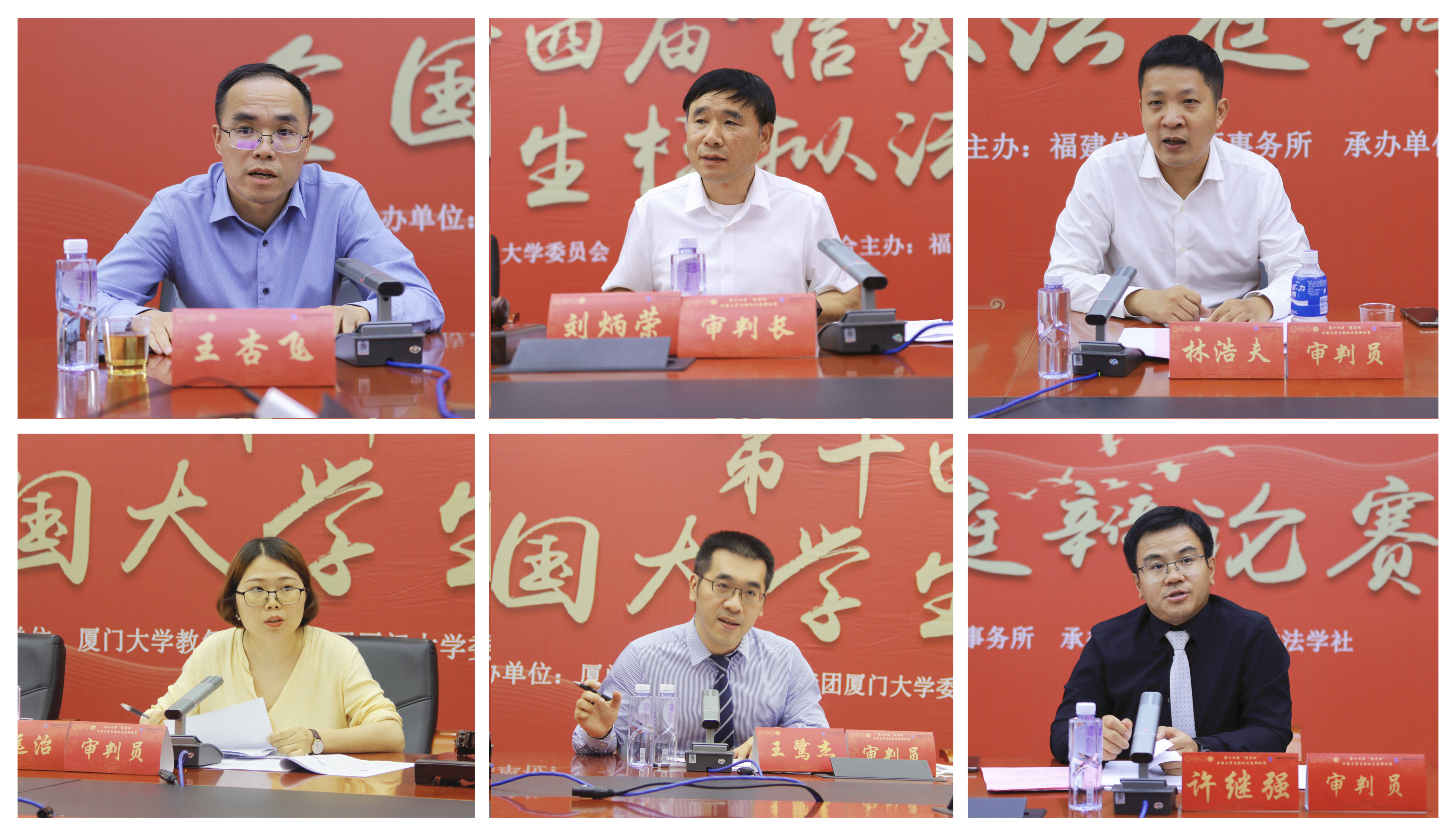 5月22日下午,第十四届“信实杯”全国大学生模拟法庭辩论赛决赛暨颁奖仪式在厦门大学法学院B220会议室召开。决赛由福建省高级人民法院二级高级法官刘炳荣担任审判长、厦门市思明区人民法院二级法官陈远治、福建天衡联合律师事务所合伙人林浩夫律师、福建旭丰律师事务所高级合伙人王鹭杰律师、上海锦天城(厦门)律师事务所高级合伙人许继强律师担任审判员。决赛氛围紧张热烈,唇枪舌战之间,选手们展现了扎实的法学功底和良好的庭辩实力。赛后,经过合议庭的充分评议,审判长宣布了决赛结果——同济大学代表队以出色的表现获得本届大赛的冠军。