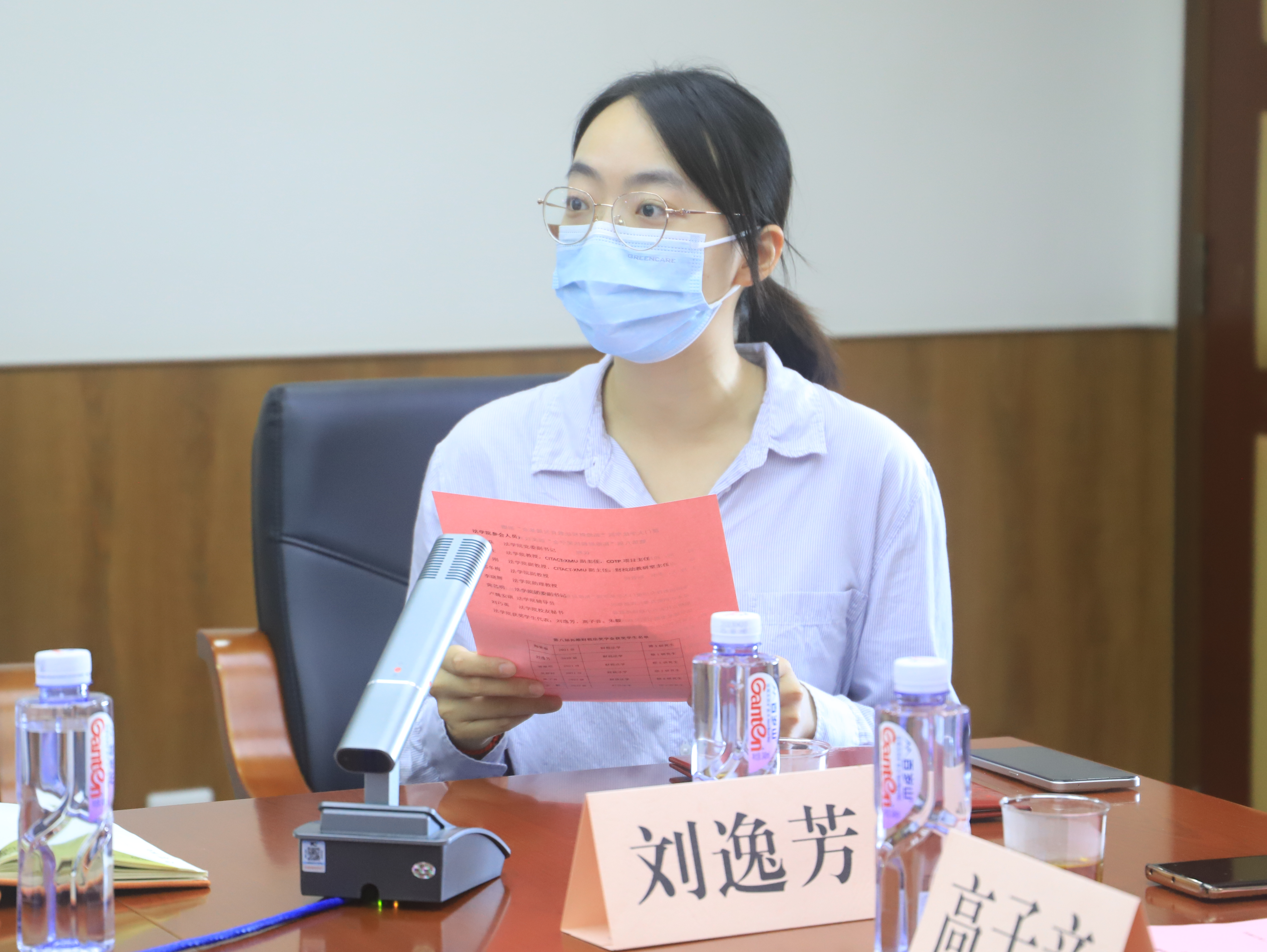 随后,获奖学生代表刘逸芳同学发表获奖感言。刘逸芳同学表示,一是感谢厦门大学以及厦门大学法学院给予的成长平台和机会;二是感谢授课老师对各位学生的教诲、关心和爱护;三是感谢拓维律所对财税法学学子的肯定以及对财税法学专业的大力支持。她强调,“拓维财税法奖学金”不仅是物质上的帮助,更是精神上的激励和肯定,更加坚定了自己求实好学的信念。李刚副教授补充说道,刘逸芳同学已经被北京大学法学院录取,即将赴该院攻读国际税法方向的法学博士学位。