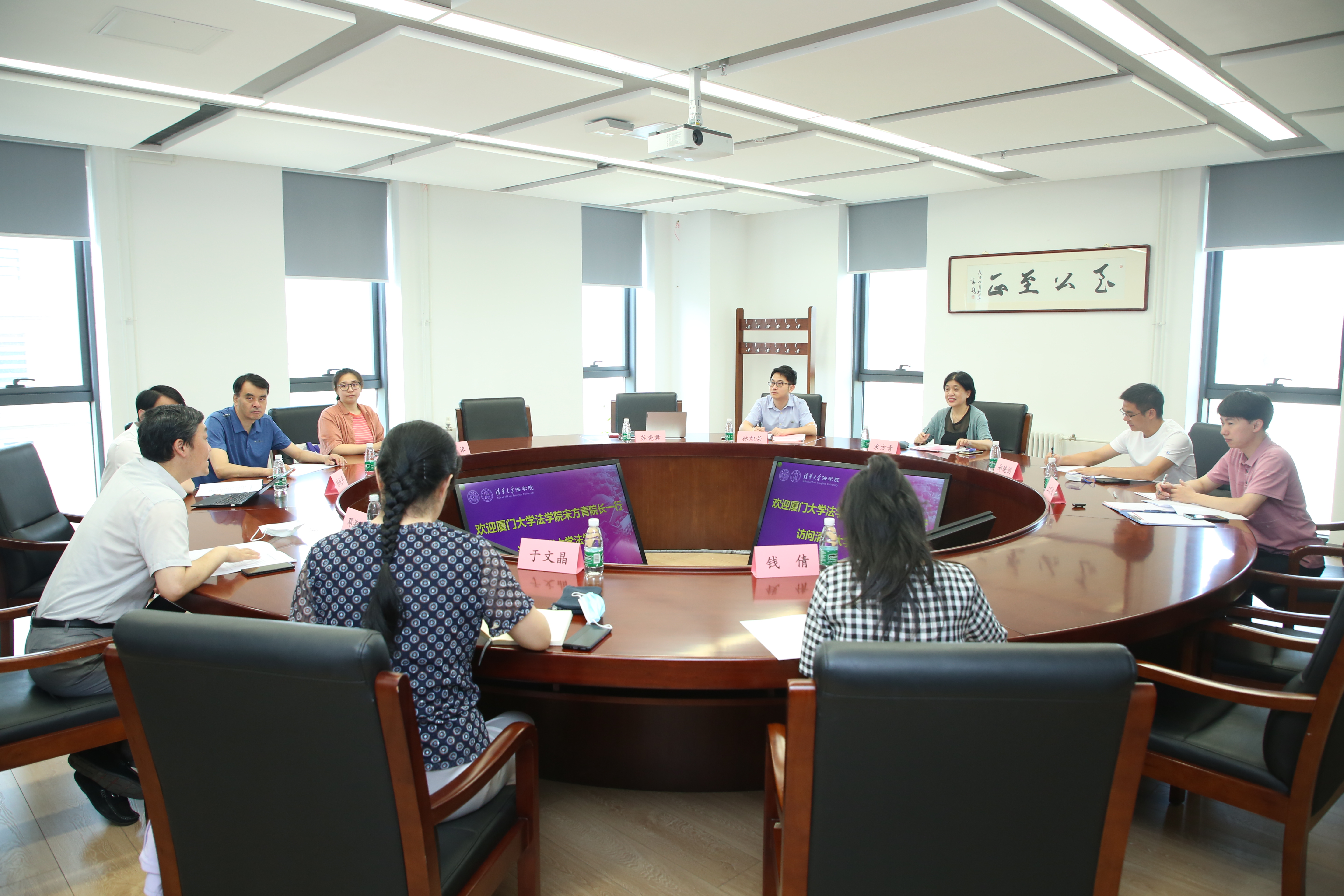 6月16日上午,宋方青一行走访清华大学法学院,与清华大学法学院党委书记邓海峰、党委副书记陈杭平、人事办主任于文晶、综合办主任官海彪、科研办秘书钱倩会面并举行座谈。宋方青院长介绍了厦门大学法学院在师资队伍、学科建设、人才培养、科研成果、咨政服务、校友工作等方面所取得的成就,并分享了学院建设的部分经验。双方从评价体系、科研奖励机制、学科平台建设、品牌学术交流活动、学生管理等方面进行沟通交流。邓海峰书记表示,期待双方加深合作,共同商讨学院高质量发展的有效举措,推动两院发展迈上新的台阶。