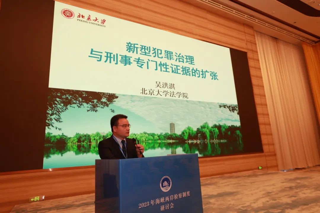 发言人北京大学法学院研究员吴洪淇针对研讨会主题做《新型犯罪治理与刑事专门性证据的扩张》的主题发言。吴洪淇研究员指出,随着犯罪构成的变化,自然犯下降,法定犯显著增加。专门性问题的判断逐渐形成以鉴定意见为主,专门性问题报告、事故调查报告和专家辅助人意见并存的基本格局。在既定制度框架和现有审查标准下,多元化证据类型格局存在规制难题。最后,吴洪淇研究员就科学证据的合法性、审查标准、专家资质、专门性知识等方面,对建构一个更具包容性的司法审查框架提出了几点期望。