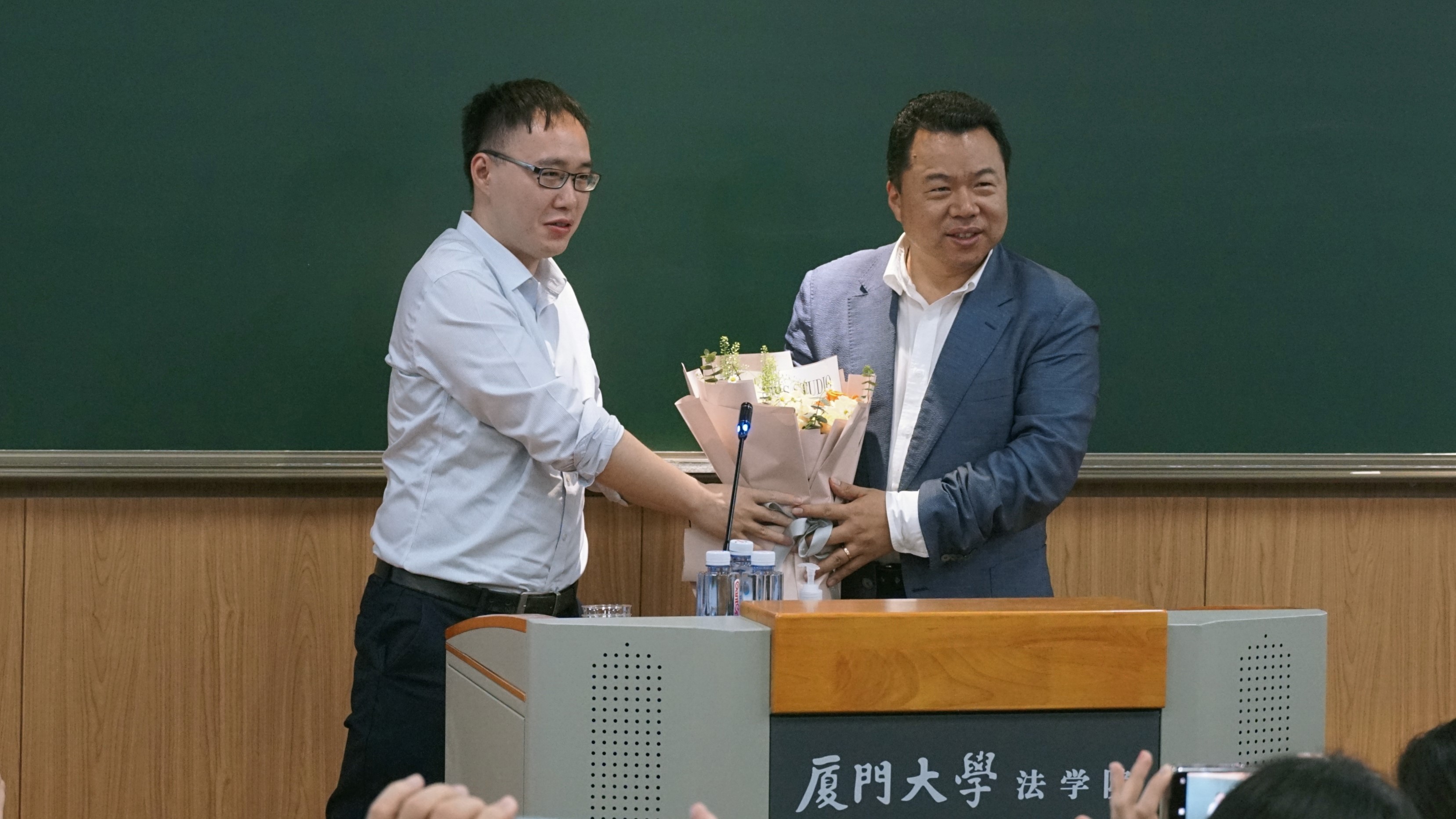 之后,林斯韦老师为李建伟老师奉上花束,以表感激,并向李建伟老师发出下一次讲座邀约,希望同学们能够再次有机会沐一场学无止境“绵绵雨”。