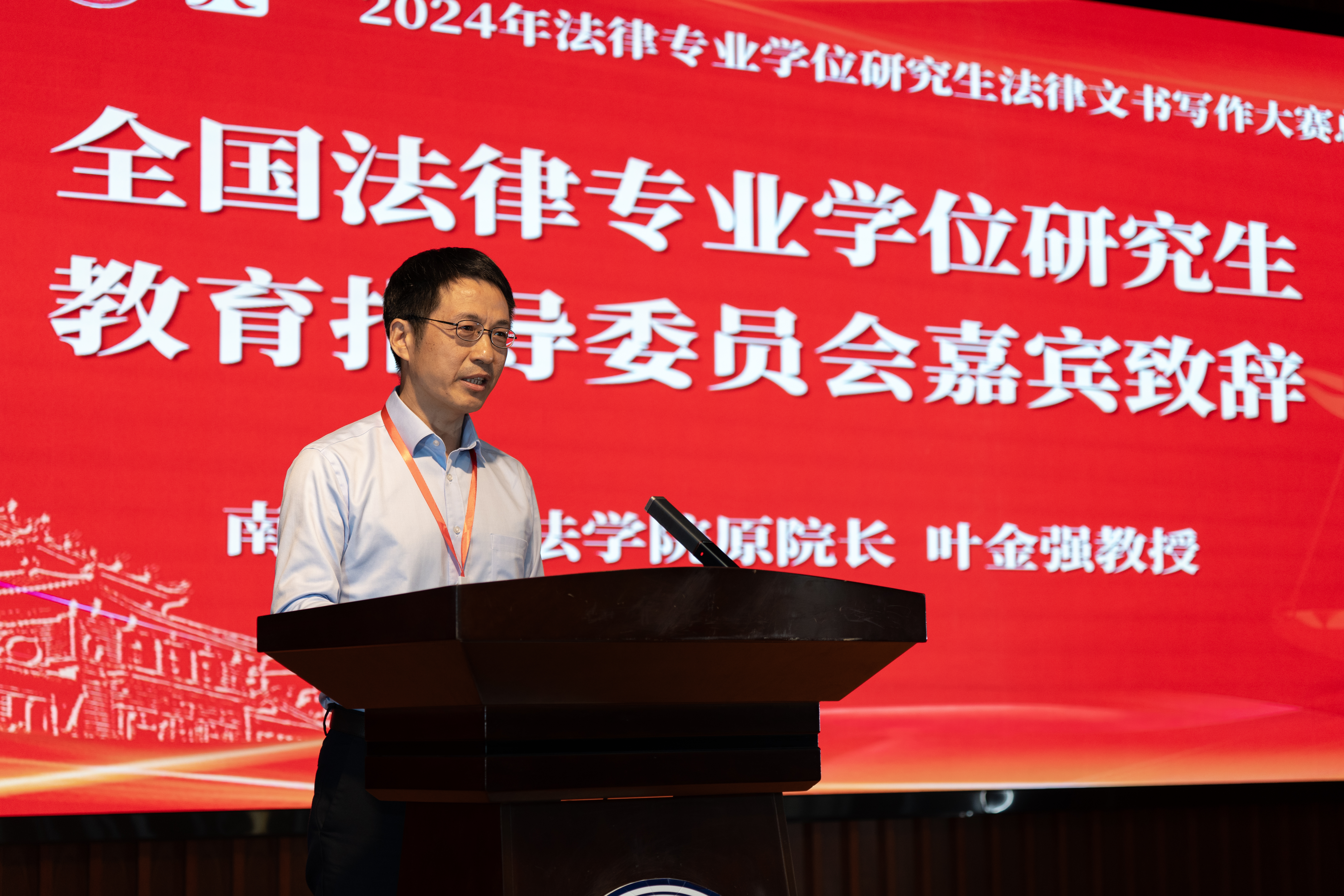 全国法律专业学位研究生教育指导委员会委员、南京大学法学院原院长叶金强向大赛的主办单位、协办单位,和所有参赛培养单位及同学表示了感谢,并希望同学们能以本次法律文书写作大赛为契机,进一步提高写作水平,为成为一名优秀的法律人才打下坚实基础。