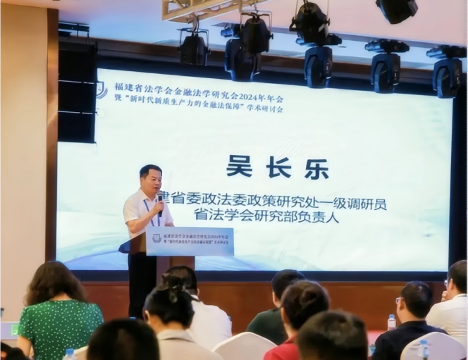 吴长乐主任肯定了自2023年8月研究会批复成立以来所开展的一系列行之有效的工作和丰富多彩的学术研讨活动,研究会在福建省金融法学理论研究、服务实践和学术交流等方面发挥了积极作用。他希望研究会能紧扣新形势、新任务、新要求,特别要精准聚焦深化经济体制改革,创新金融制度,防范化解经济金融领域的风险,研究金融法学领域内的前瞻性、基础性和交叉性问题,发挥好团队人才资源,健全相关工作机制,努力将研究会打造成福建法学会的思想库、人才库和智能库。